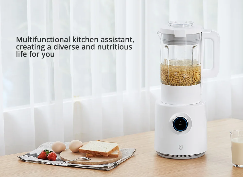 Многофункциональный кухонный помощник, создающий разнообразную и питательную жизнь для вас Многофункциональная машина для приготовления пищи Mijia может удовлетворить потребности кухни, такие как сок, соевое молоко, смузи, горячий суп, детское питание и молотое мясо. Он может легко создать богатую и разнообразную питательную жизнь.