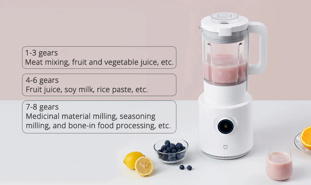 Умный блендер Xiaomi Mijia для фруктов и овощей, Кухонный комбайн, миксер, соковыжималка для приготовления смузи и детского питания Обратите внимание, что это китайская версия сервера, CN plug добавляет адаптер питания EU/AU/UK, чтобы убедиться, что он работает в разных регионах. Основные характеристики * Мощное высокоскоростное разрушение стены. * 8 лезвий из нержавеющей стали, мгновенное разрушение стены/Мелкое шлифование. * 24 часа назначения, время, чтобы закончить приготовления пищи. * Утолщенное высокое боросиликатное стекло, холодное и горячее двойное использование, анти-замораживание и термостойкость. * Точная Программа питания, Многоступенчатый интеллектуальный контроль скорости. * 10-fold предохранение от безопасности, используйте более легко. * Улучшите дизайн спойлера, улучшите смешивание/уменьшение остатка. * Oled-экран, простая, понятная и интуитивно понятная работа. Описание характеристики Mijia Электрический блендер/соковыжималка/машина для приготовления пищи, питательная жизнь, сделано для вас Mijia машина для приготовления сломанной стены, одна машина с несколькими функциями, деликатное измельчение, нагревание, длительное сохранение тепла, ингредиенты выпускают питательную и вкусную еду между дроблением и столкновением.