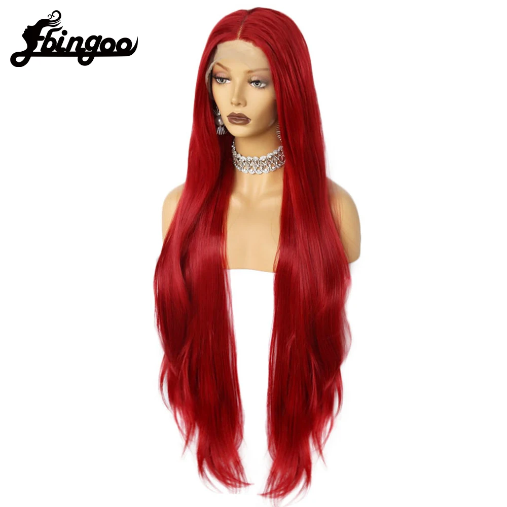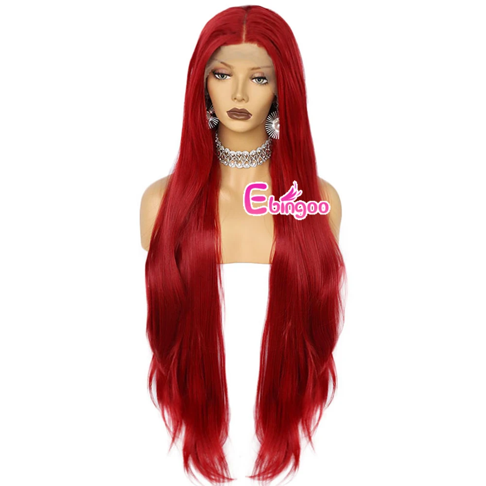 Ebingoo 40 дюймов 13x1 красный длинный прямой парик на сетке спереди натуральные волосы прямые синтетические парики на сетке для черных женщин королевечерние к
