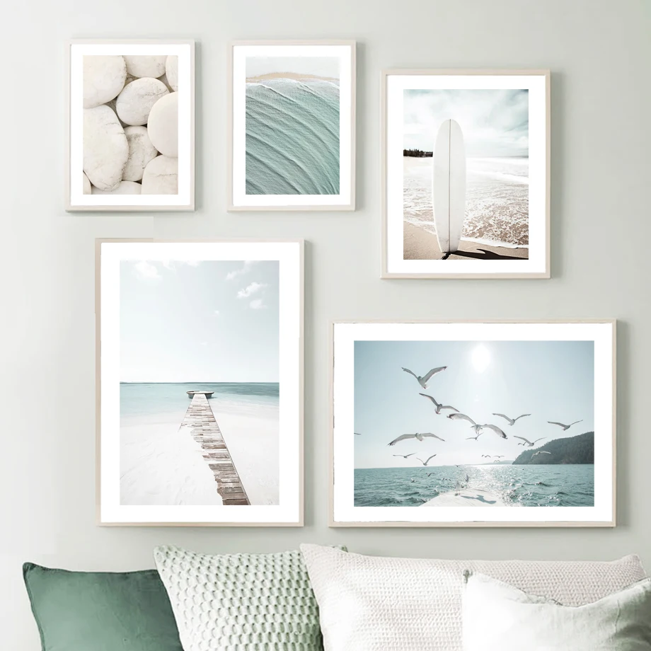 Пляжная доска для серфинга с тростниковым листом, скандинавский постер, настенный художественный принт, холст, картина, настенные картины для декора гостиной