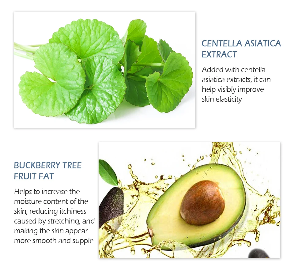 [Основные компоненты] Глицерол, бутиленгликоль, каприлия, триглицерид Каприка, изодецил танонаноат, гречберридерево (BUTYROSPERMUM PARK I) фруктовый жир, цетеариловый спирт, филлакфибриловая кислота, экстракт экстракт centella asiatica, диметиконол, глюкан, экстракт овсянки, гидролизованный соленоидный белок, коллагеновые аминокислоты, керамид 1, ацетил гексапептид, олигопептидель, никотинамид, трансферная кислота, (Витамин е), бисаболол, гиалуронат натрия[Эффективность продукта] извлеките натуральную питательную эссенцию растения, непрерывно высвобождая свежую и энергичную энергию, мягкую и нежную, особенно для беременных женщин, для восстановления линий беременности путем затягивания и сглаживания кожи. Поддерживает удержание влаги и помогает уменьшить появление следов и шрамов, улучшает релаксацию, грубые тонкие линии и другие проблемы с кожей, восстанавливает нежную гладкую кожу[Типы кожи] подходит для различных типов кожи[Характеристики] 1,05 floz (30 г)