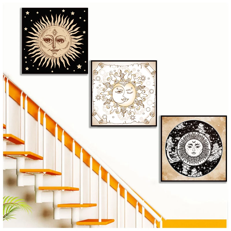Постер в скандинавском ретро стиле с созвездиями, печатные изображения на стену в стиле небесной линии, настенные картины с изображением солнца, луны, звезд для гостиной, домашний декор