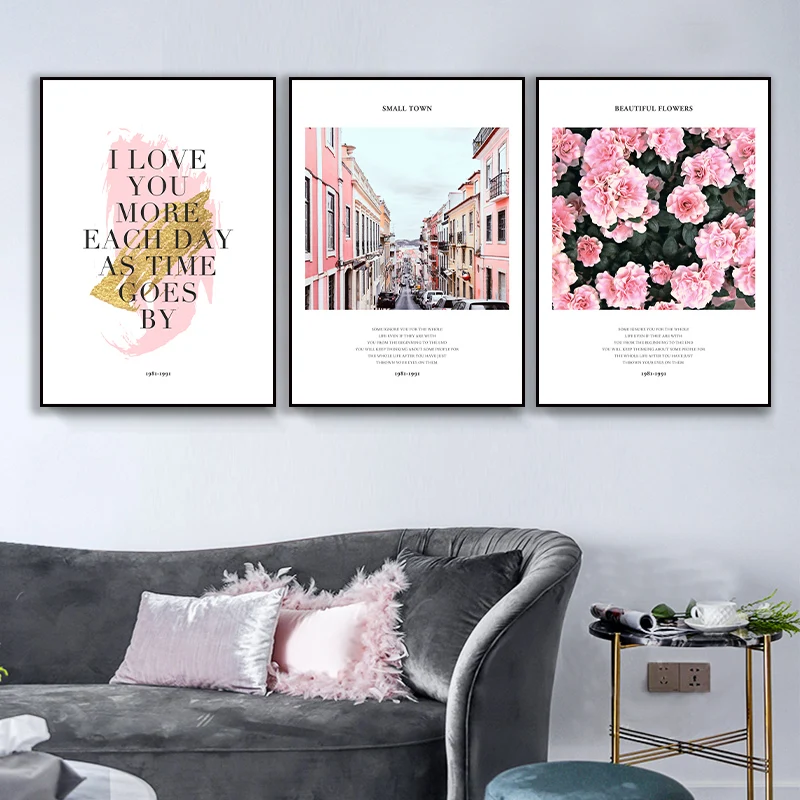 Настенный постер розового цвета с романтическими надписями и цветами в скандинавском стиле