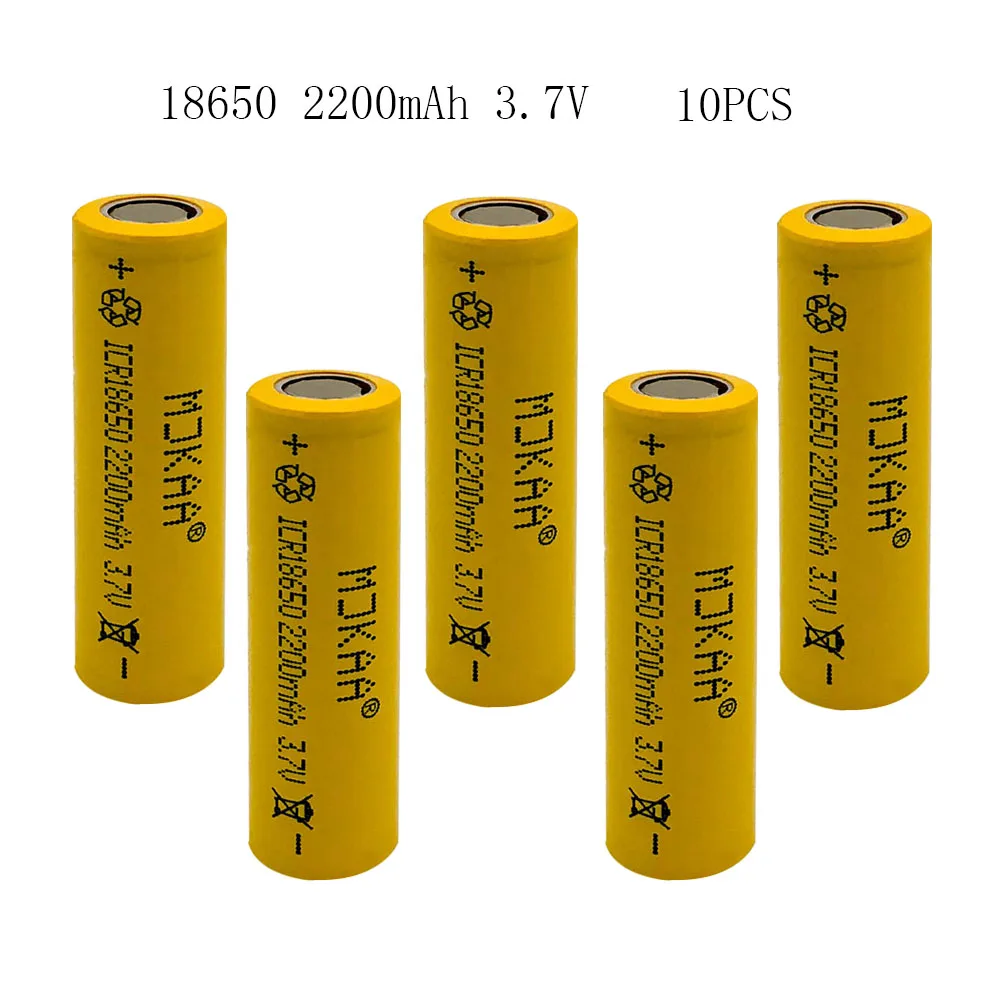 10 шт. 2200 мАч, желтый 18650 Перезаряжаемые Батарея 3,7 V ионно-литиевая Батарея для светодиодный фонарик Фонарь 18650 Батарея