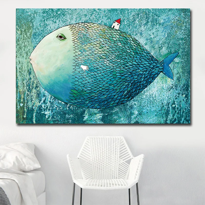 Скандинавский мультяшный дом на рыбке, креативная Картина на холсте, постеры, Настенная картина, картина для детской спальни, живой Рим, домашний декор