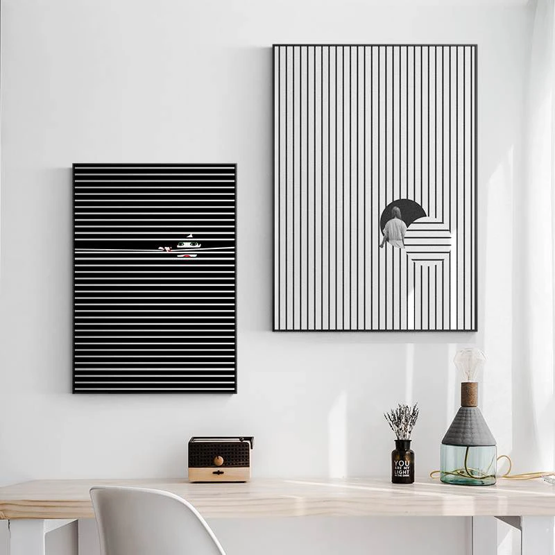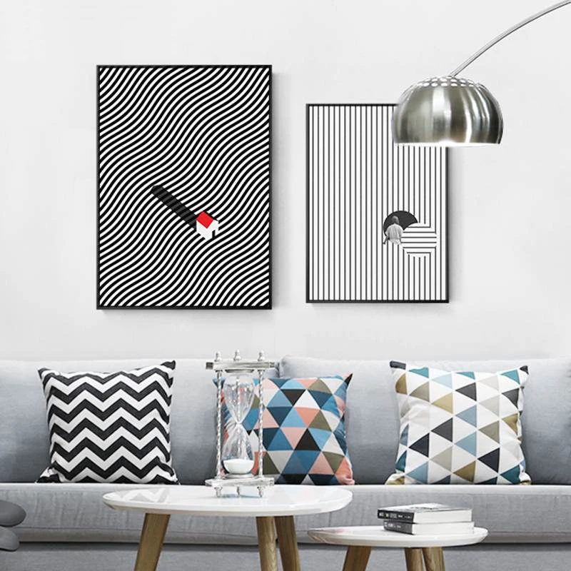 Абстрактная живопись минималистский рисунок Художественная печать плакатов геометрический Nordic настенная живопись, холст черный, белый цвет изображения Гостиная домашний декор