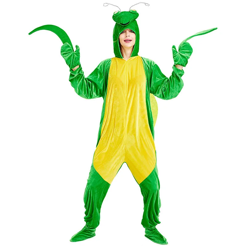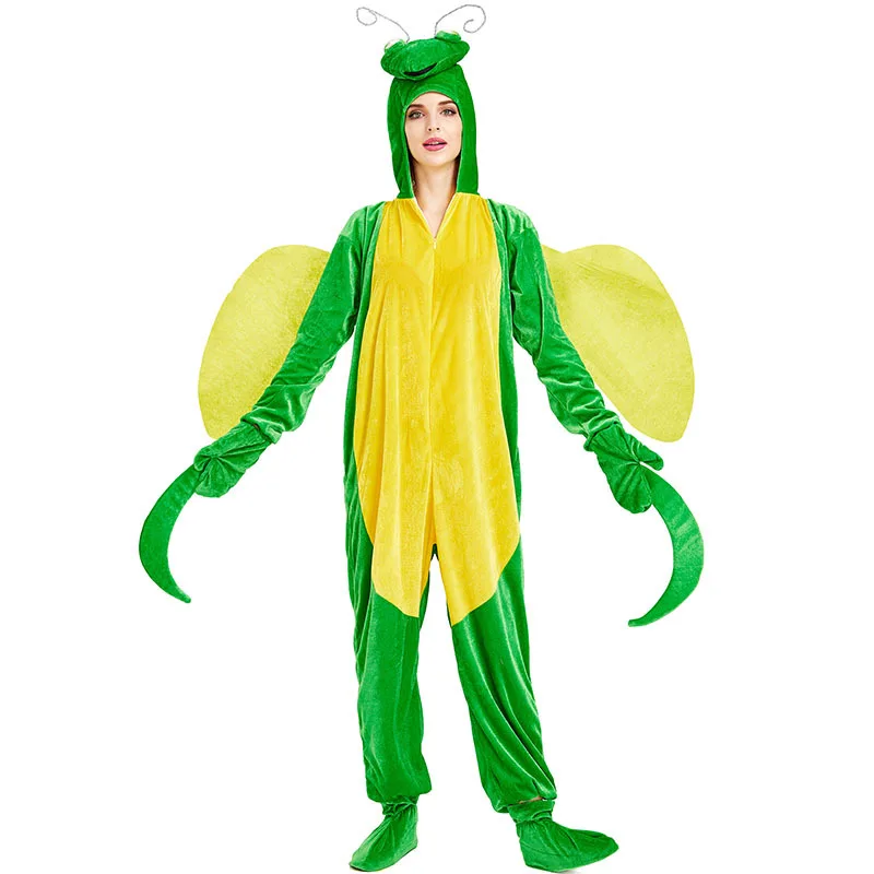 Костюмы с животными для косплея на Хэллоуин для взрослых, зеленые мантис, Карнавальная вечеринка, ролевые игры для мальчиков и девочек, сценические представления, смешные комбинезоны
