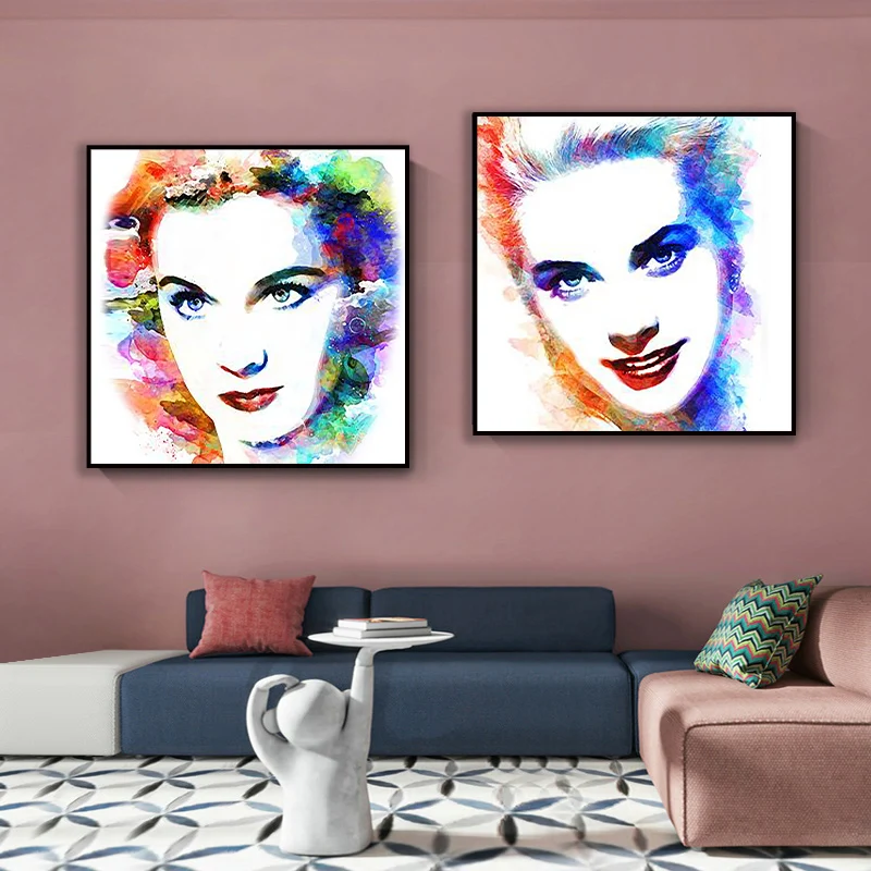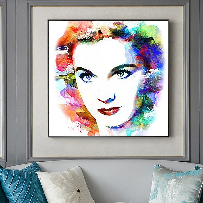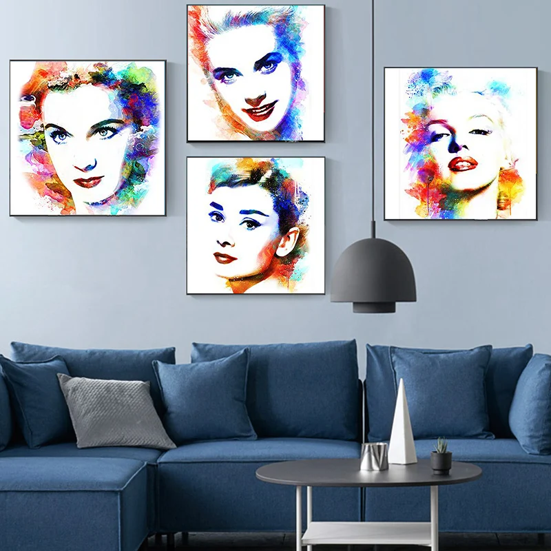 Скандинавский постер с изображением кинозвезды Одри Хепберн, Настенная Живопись акварелью на холсте, картина для спальни, гостиной, домашний декор