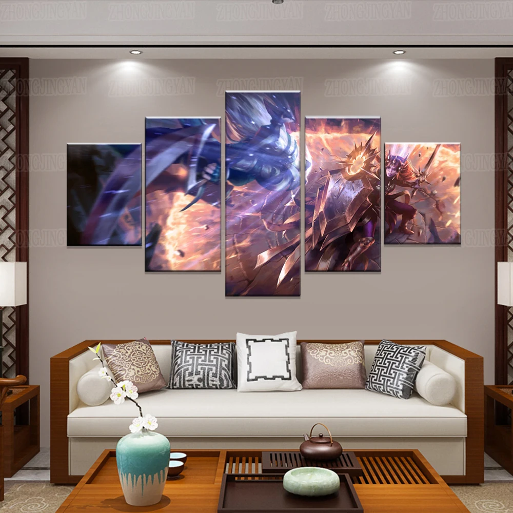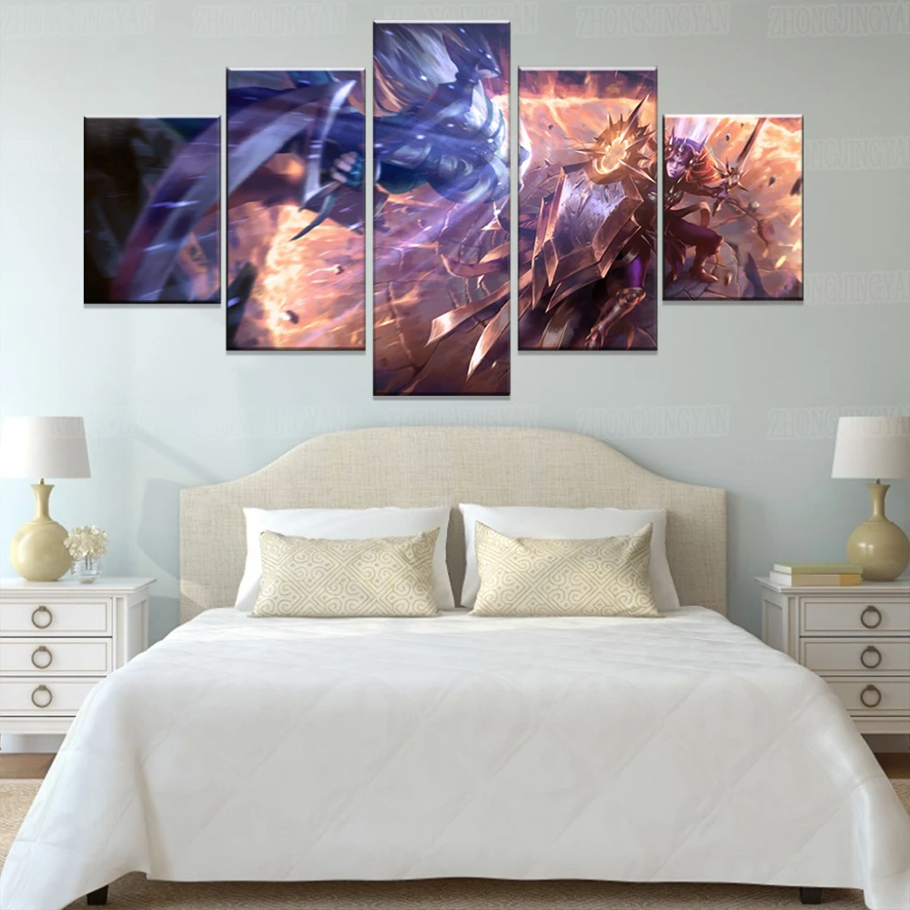 Современный холст Художественная печать 5 шт. битва Лига Легенд Диана Леона щит меч картина настенное украшение модульный игровой плакат