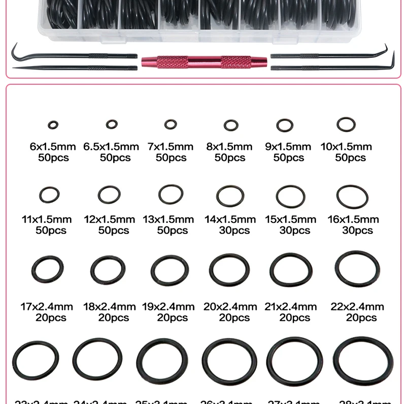 Купил этот набор совсем случайно ! Мне написал продавец и говорит Я хочу тебе сделать подарок выбирай с двух наборчиков один .А был на 1000 шт з либо на 1200 ! Ну я и согласился и он мне снизил стоимость до 1 доллара . Что могу сказать по поводу уплотнительных колец так это то что они высокого качества , в меру упругие пробовал их ростягивать так они опять принимают туже хорму что была изначально что очень хорошо . Бензомаслостойкость высокого качества ! Пробовал царапать колечки у меня это не очень получилось так как резина очень устойчива к истиранию , а это говорит что можно их применять также у парах трения ! У меня также есть колечки от этого продавца фиолетовые так те твёрже от этих это имейте ввиду по своим потребностям подбираете ! Продавец хороший и товар хорошего качества !⭐⭐⭐⭐⭐