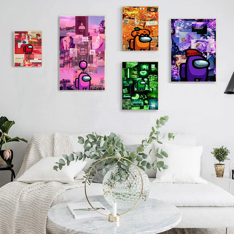 Современная модная популярная игра среди нас креативная Картина на холсте постер с принтом для детской комнаты Настенная картина для спальни гостиной домашний декор