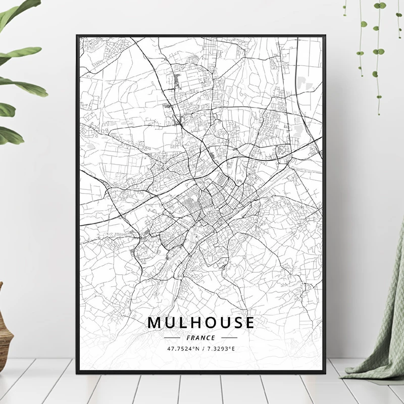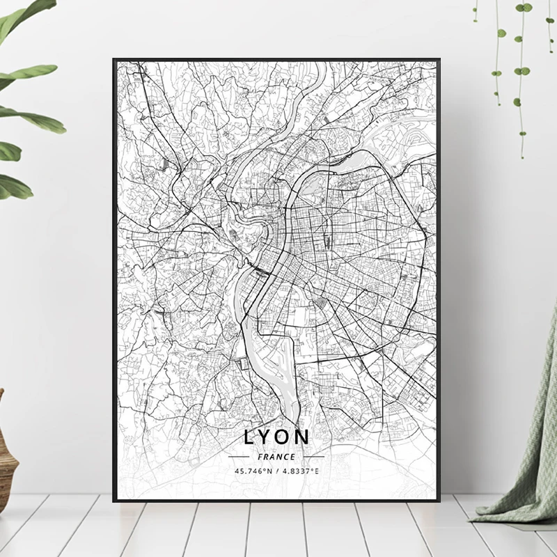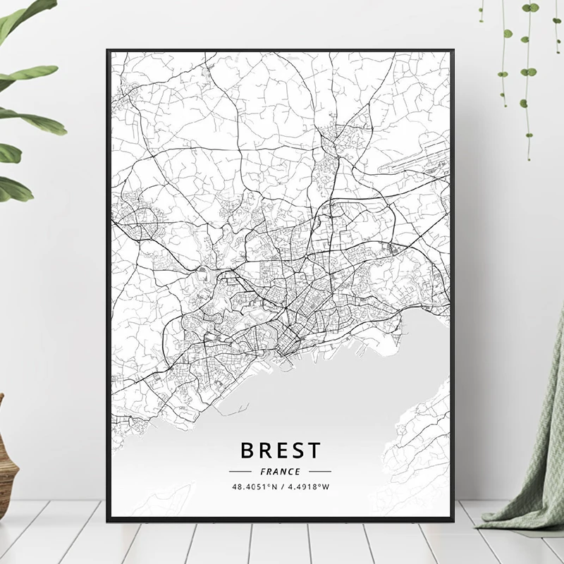 Карта на заказ, плакат, Карта города Польши, черно-белая печать, ка...