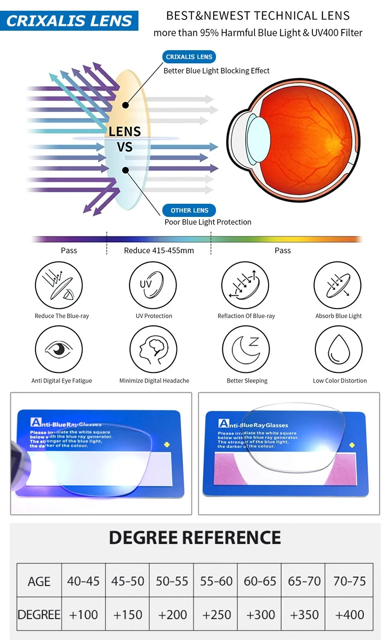 Очки для чтения CRIXALIS квадратные с защитой от сисветильник света для мужчин и женщин, с антибликовым покрытием, с диоптриями, для дальнозоркости, компьютерные очки UV400