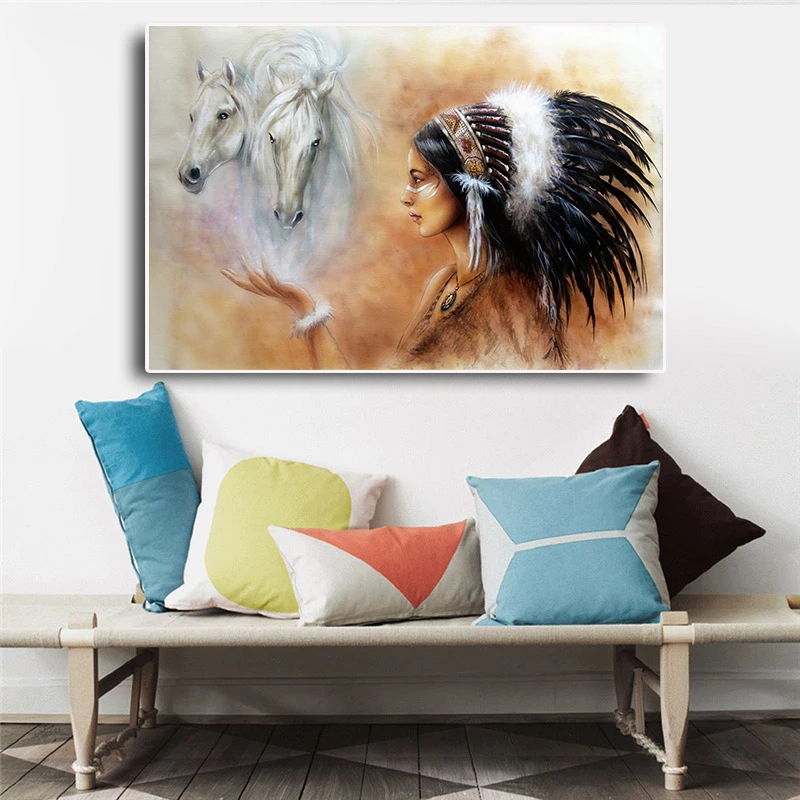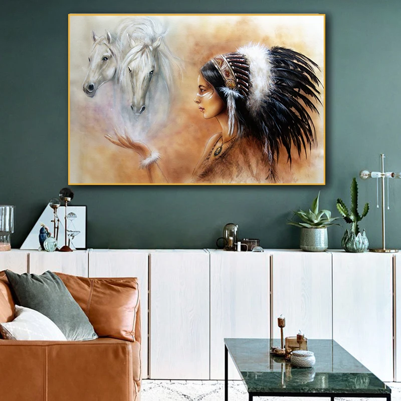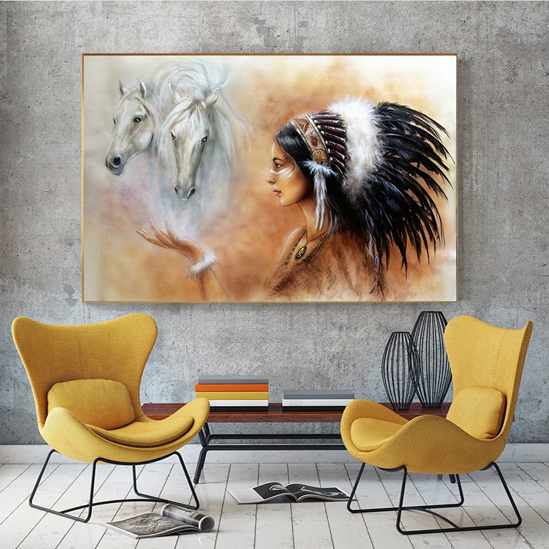 Скандинавская живопись маслом на холсте, Красивая индийская женщина с лошадью, ВИНТАЖНЫЙ ПЛАКАТ, принты для спальни, гостиной, украшение для дома