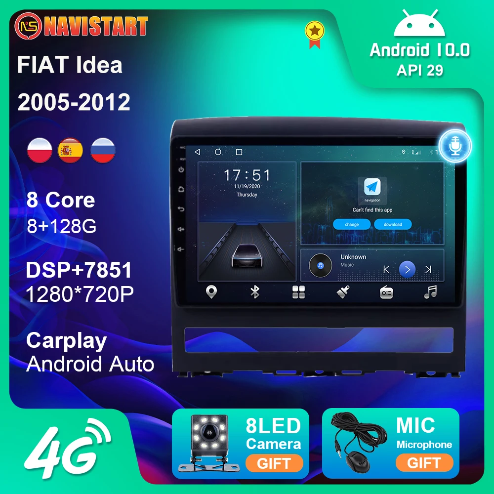 Автомобильный радиоприемник Android 10 для FIAT Idea 2005-2012 для Strada 2006-2012 для ZOTYE Z200 2011-2014 GPS-навигация 4G WIFI без DVD-плеера