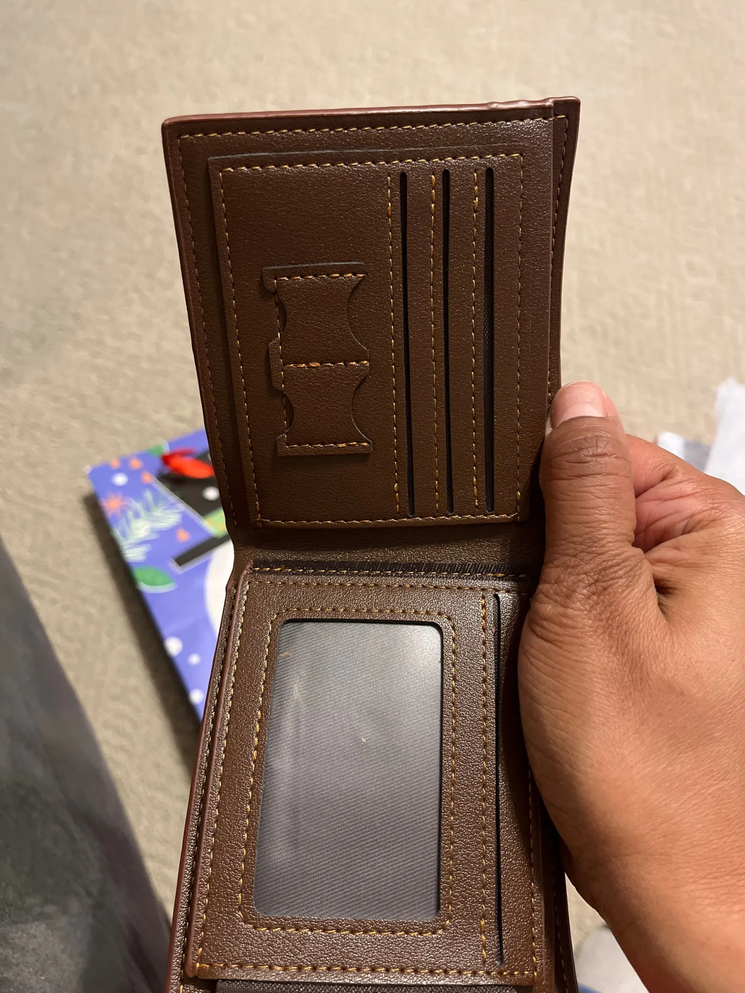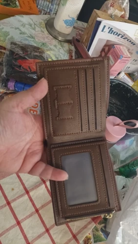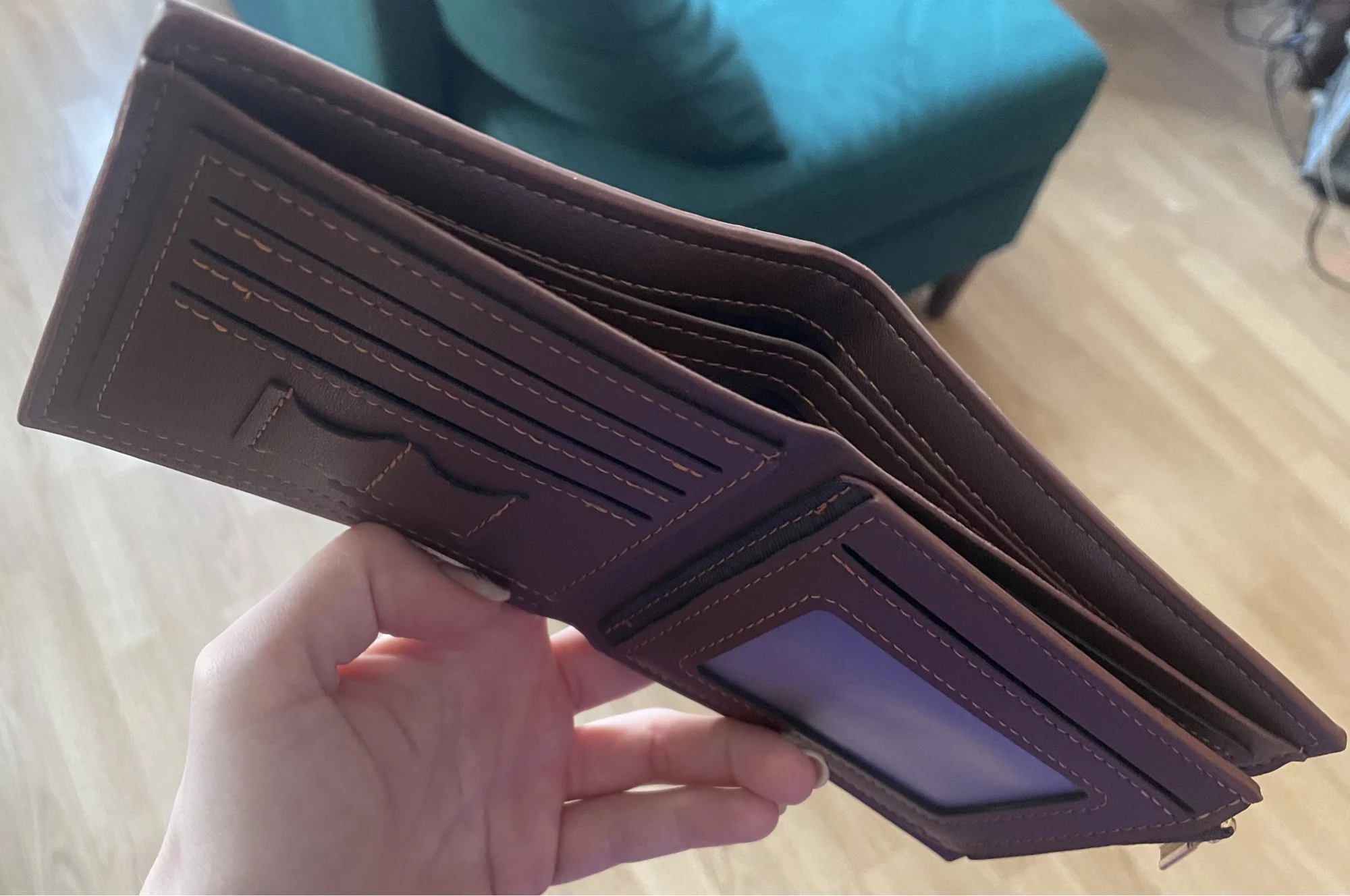 -Оформил заказ 9 февраля, прибыл сегодня 27. На две недели раньше расчетной даты доставки! (отправлено в НЗ). -Принесла в Подарок на юбилей мужу, и это точно так, как изображено и описано. Две средние части для наличных денег, слот для фотографий, маленький карман для монет, но, самое главное, много слотов для карт. -И изображение, и сообщение в любом случае не кажутся поднятыми, они полностью заподлицо, напечатаны на кошельке, поэтому, надеюсь, прослужат много времени.