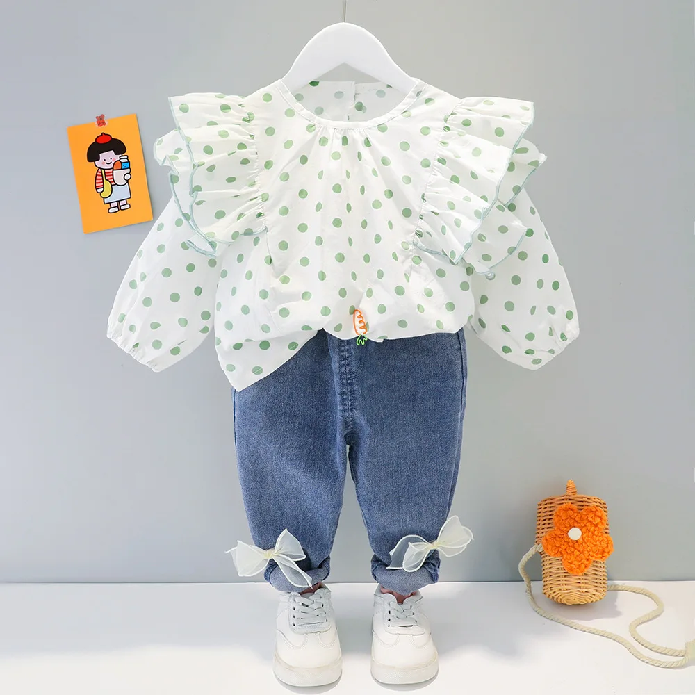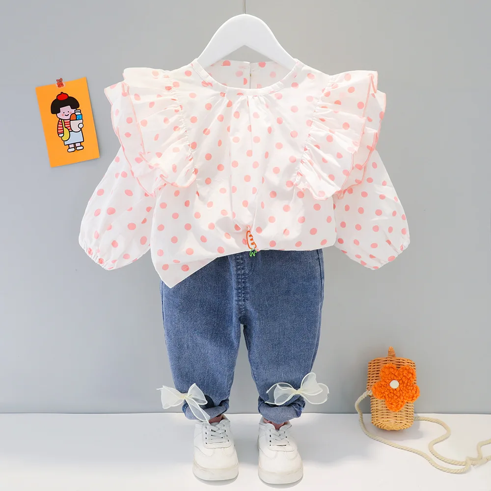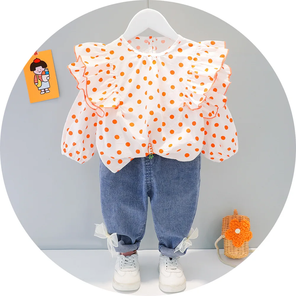Комплект одежды для новорожденных девочек, рубашка в горошек и джинсы, на возраст 1 год