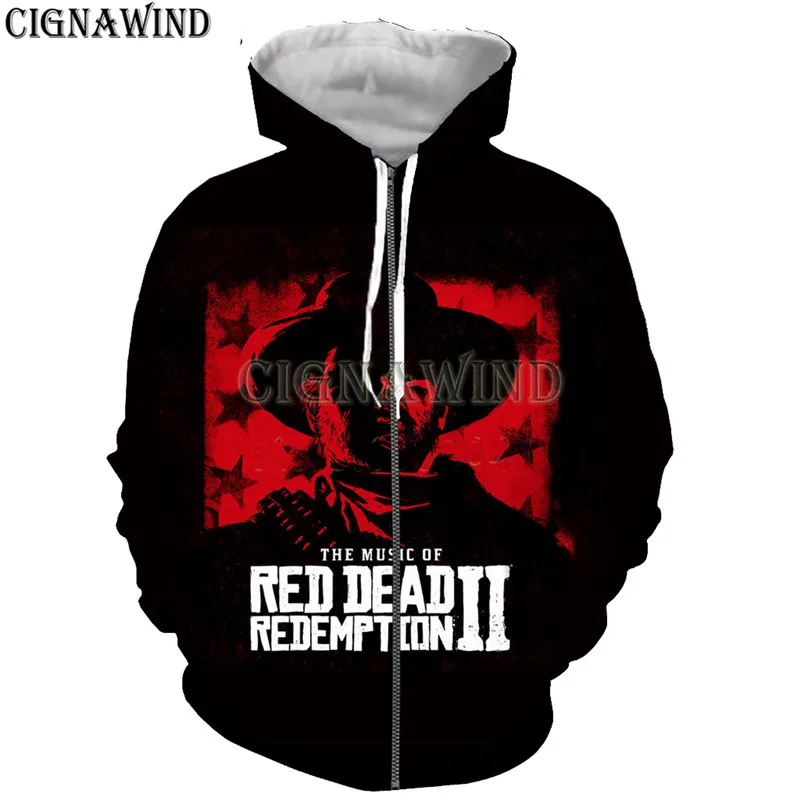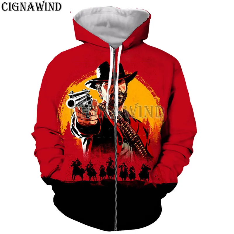 Новое поступление, толстовка на молнии для мужчин и женщин, толстовка с капюшоном на молнии с 3D принтом игры Red Dead выкуп 2, Стильные топы на молнии в стиле Харадзюку