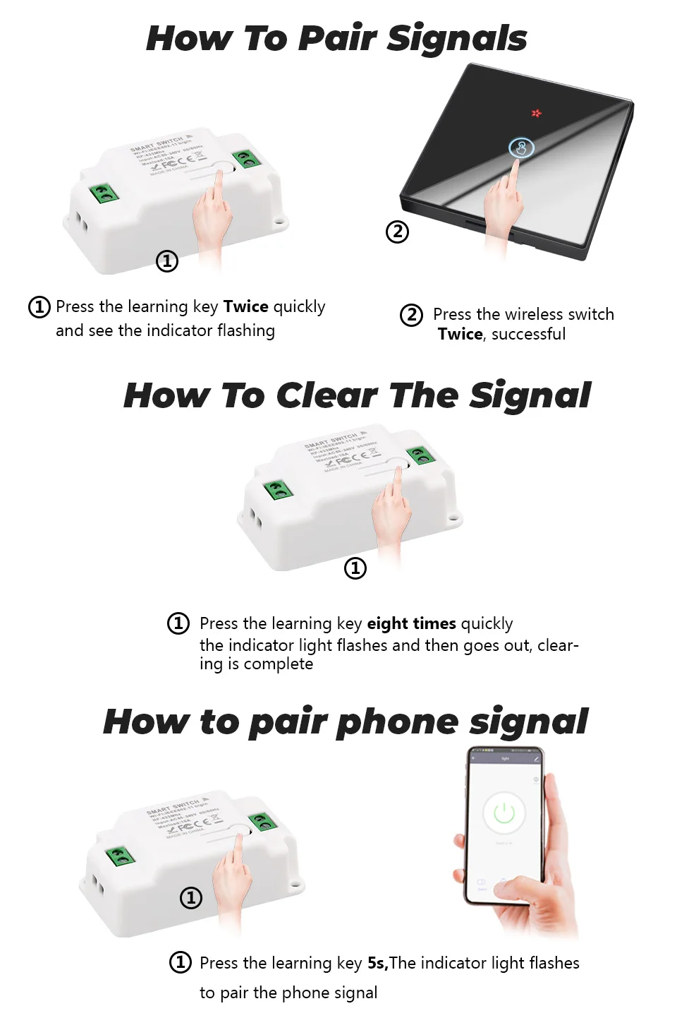 1. Для радиочастотного передатчика требуется часть CR2032, батарея не входит в посылка.2. Высокочувствительный дизайн, дизайн ящика, Флуоресцентный светильник, защита от падения, большая панель и т. д.3. Беспроводной переключатель не имеет функции WIFI, только функция RF433MHZ4. Контроллер имеет WIFI + RF433MHZ + Приложение + голосовую функцию5. Есть проблема с продуктом, не волнуйтесь, мы повторно выдадим новый продукт. (Сначала свяжитесь со службой поддержки клиентов и отправьте достаточно видео доказательства проблемы)