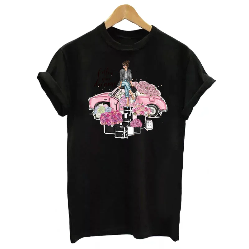 Милая Черная Термотрансферная наклейка для девочек, футболка с прин...