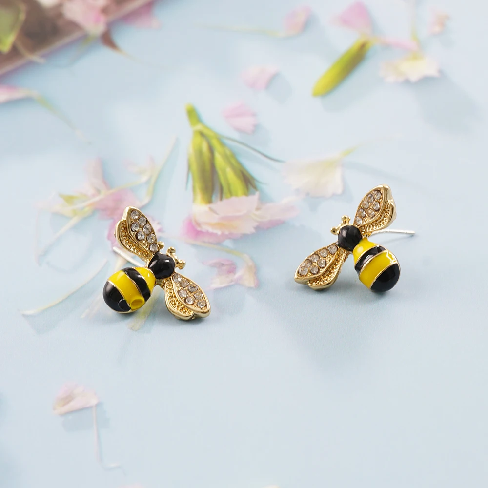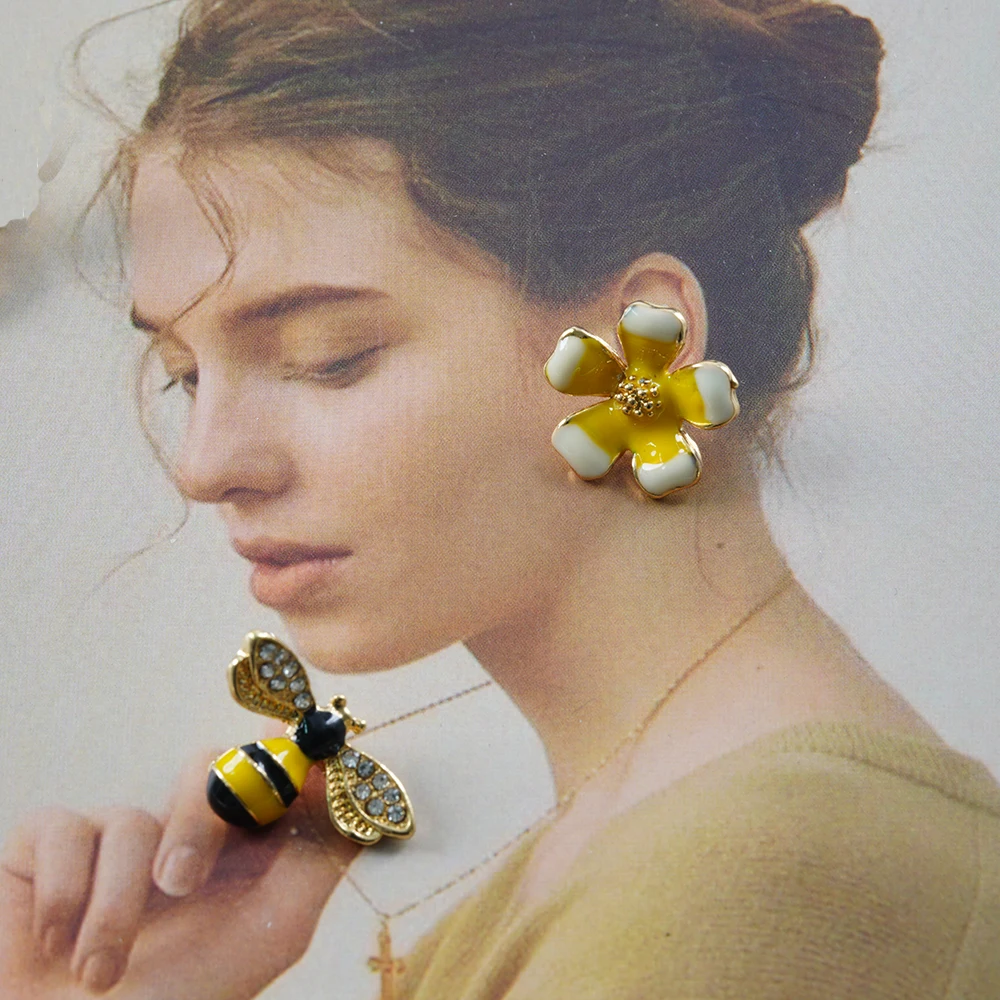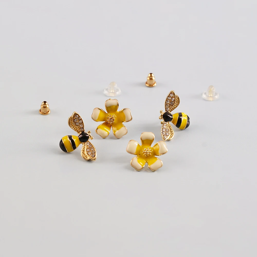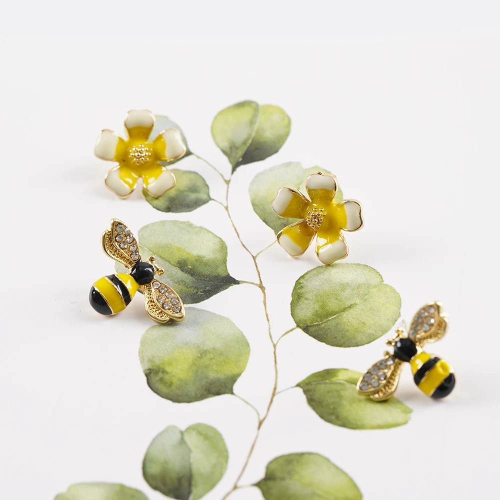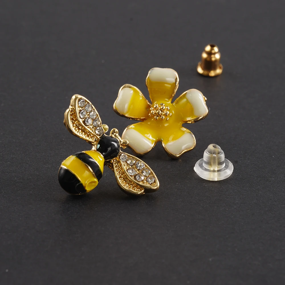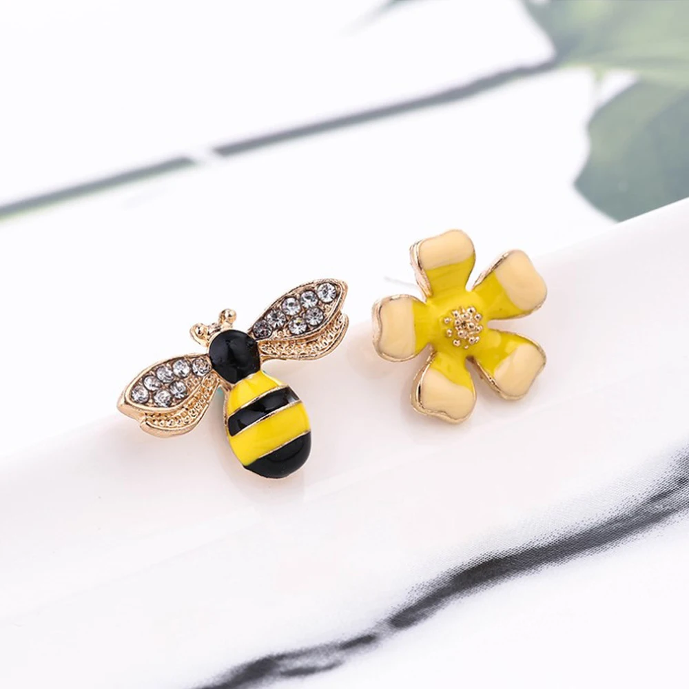 2022 Симпатичные новые асимметричные серьги в виде цветка и пчелы, циркониевые серьги, оптовая продажа, Модная бижутерия, серьги-гвоздики в стиле панк для женщин и девушек, подарок