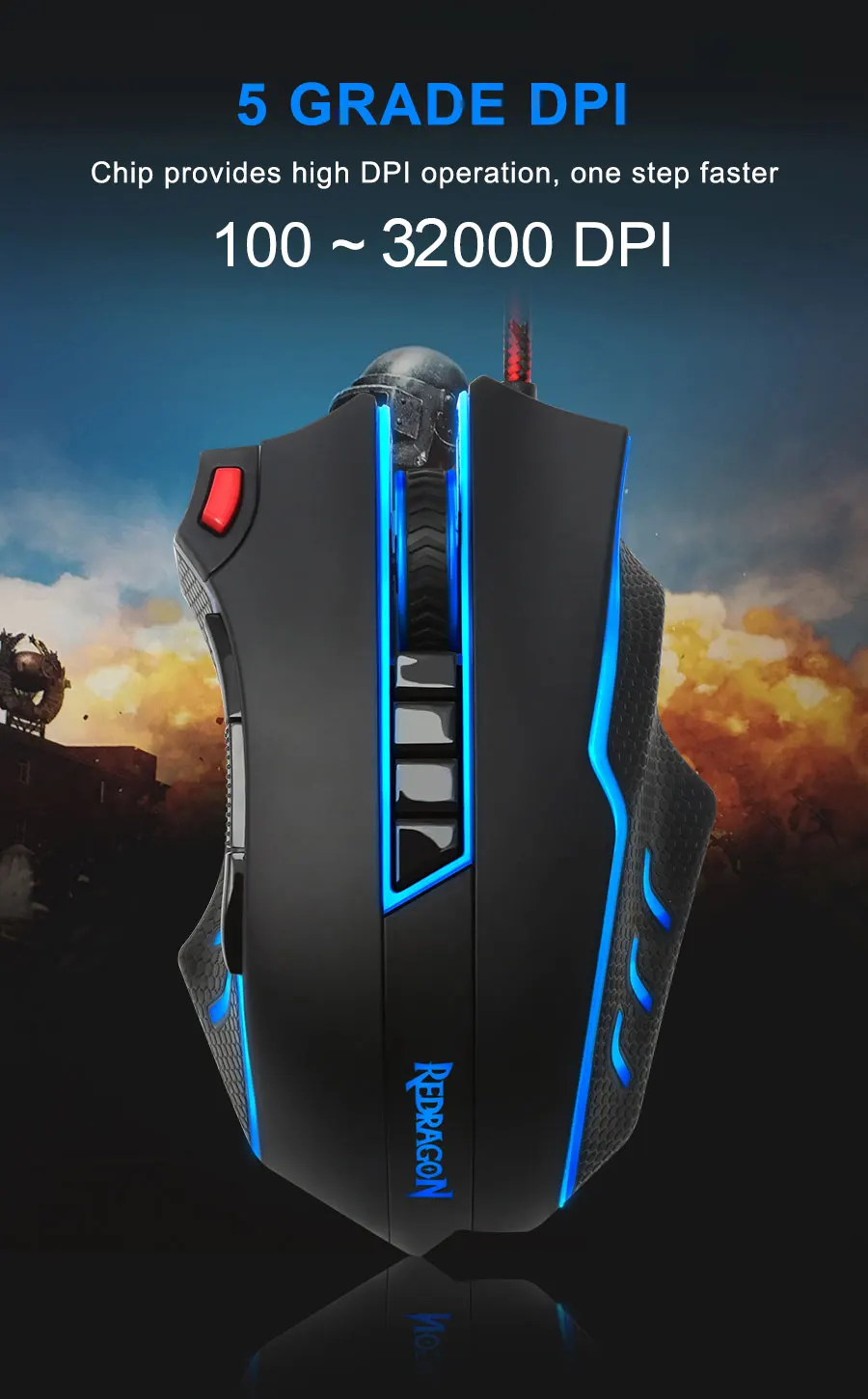 Чип обеспечивает dpi 100 ~ 32000DPI (настраивается пользователем), что дает вам еще больше преимуществ перед конкуренцией.