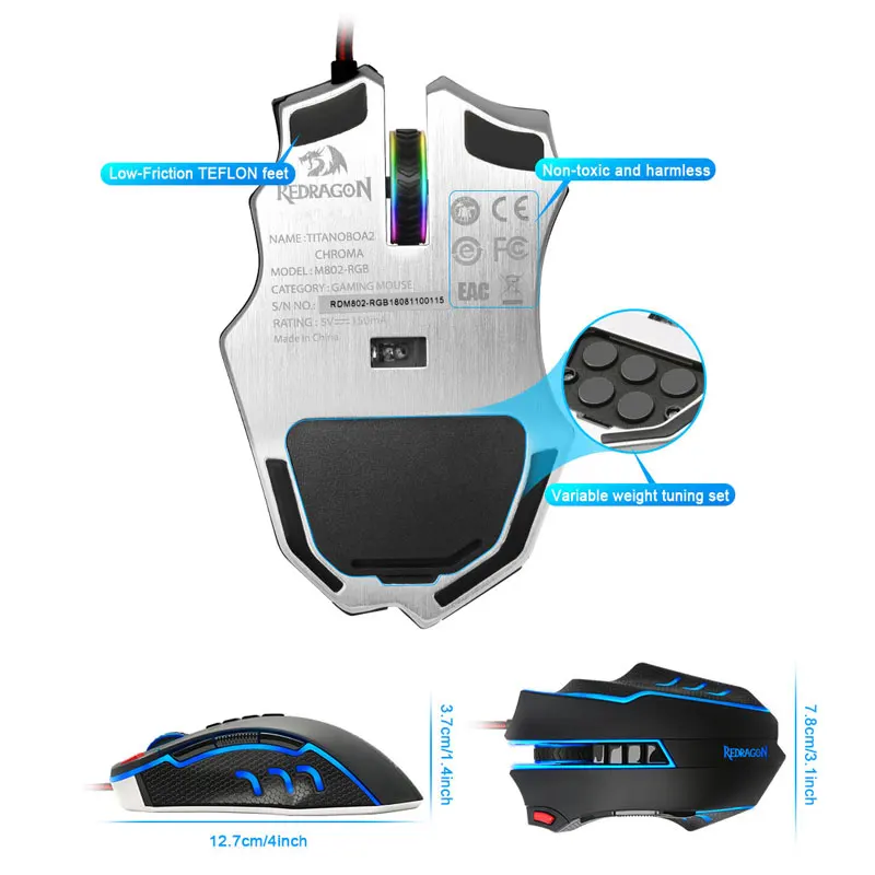 Прочные гладкие тефлоновые ножки и контурный корпус для максимального игрового контроля.Набор для настройки веса из 5 предметов, Регулировка веса в соответствии с личными ощущениями