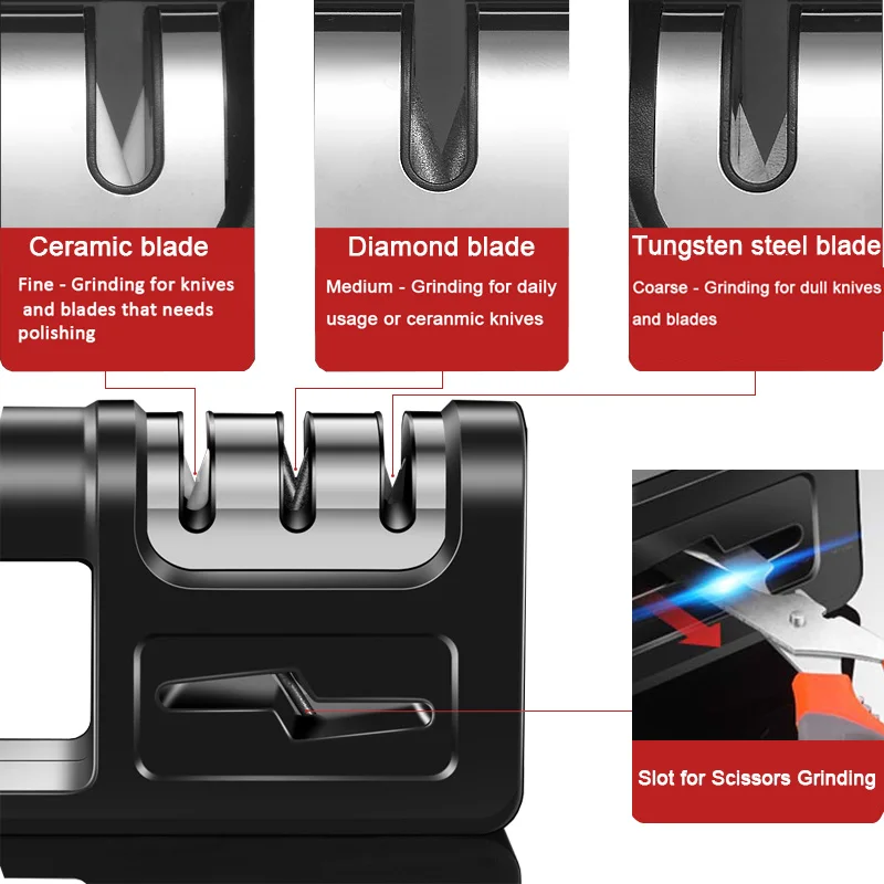 Точилка для ножей 4 в 1, кухонные керамические ножницы с алмазным покрытием, точилка для шеф-ножниц, приспособления из вольфрамовой керамики