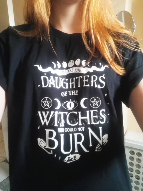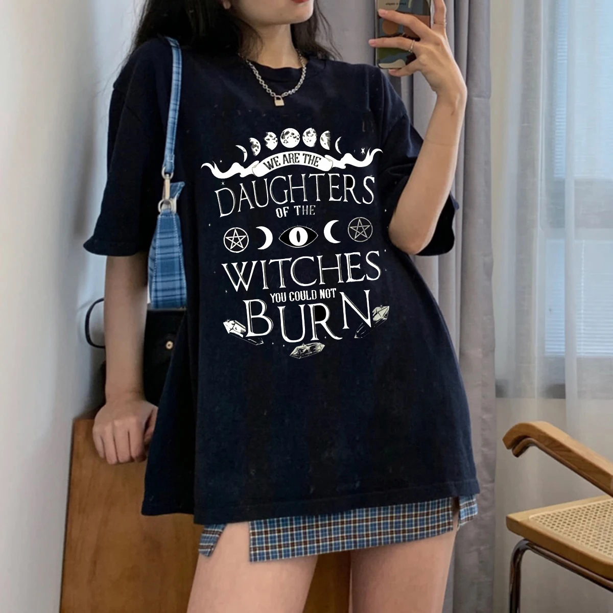 Дочери ведьмы сжечь футболка для девочек Графические футболки HarajukuДля женщин Топ Готический символ печатных Tumblr Hipster