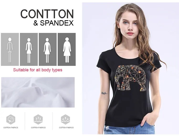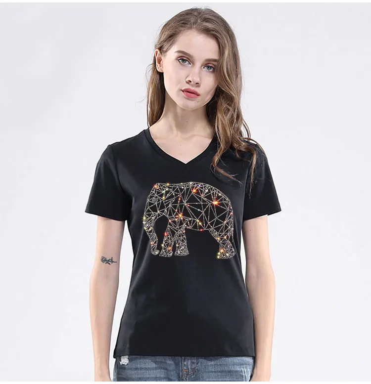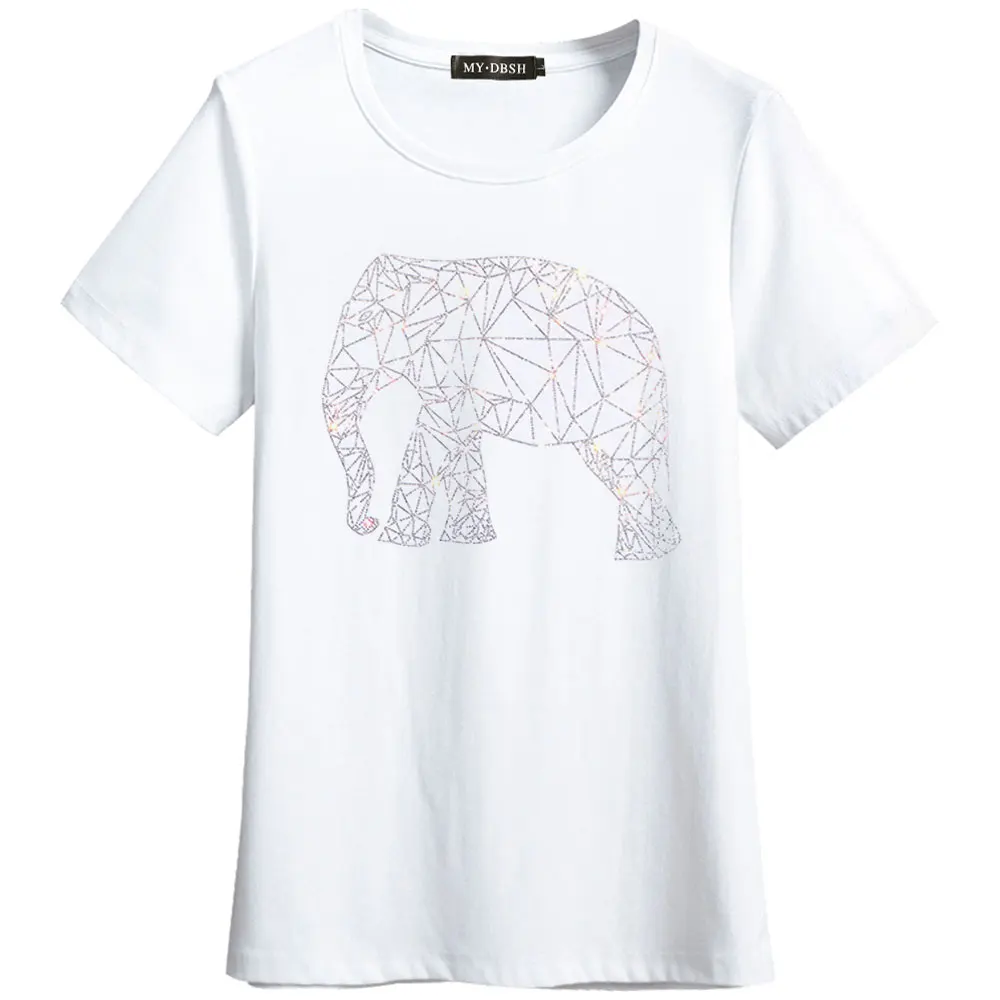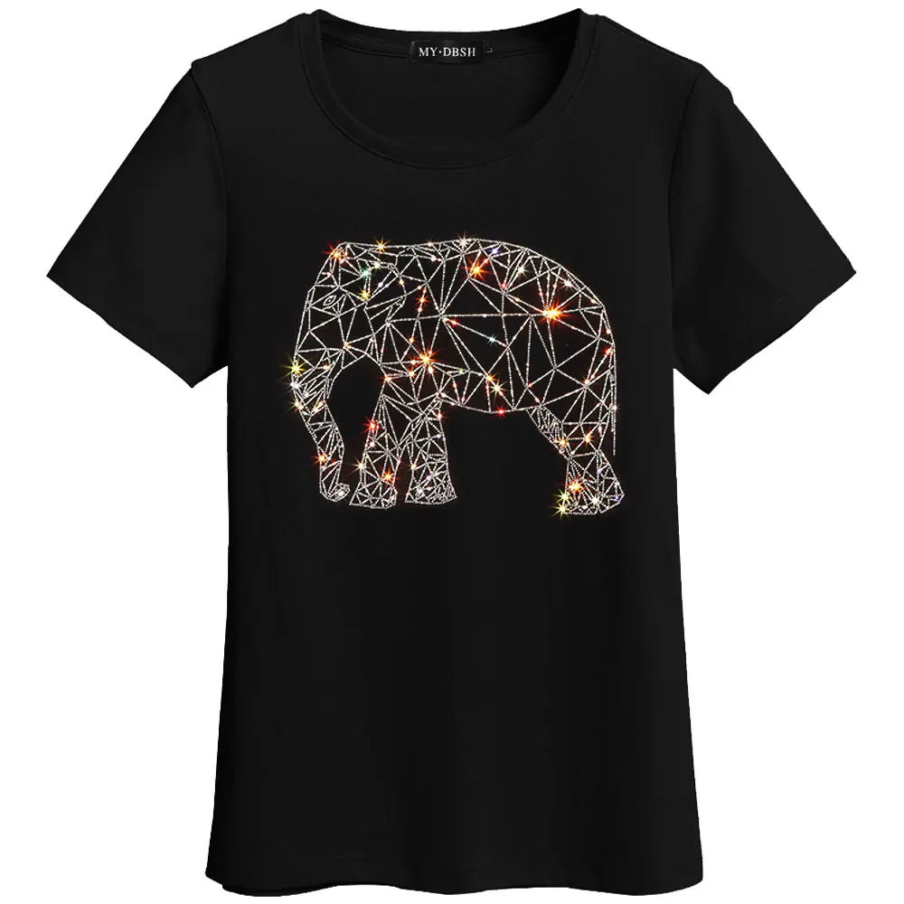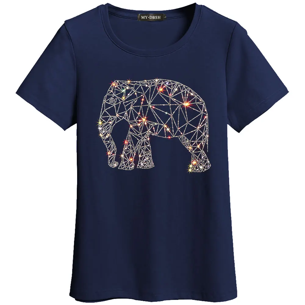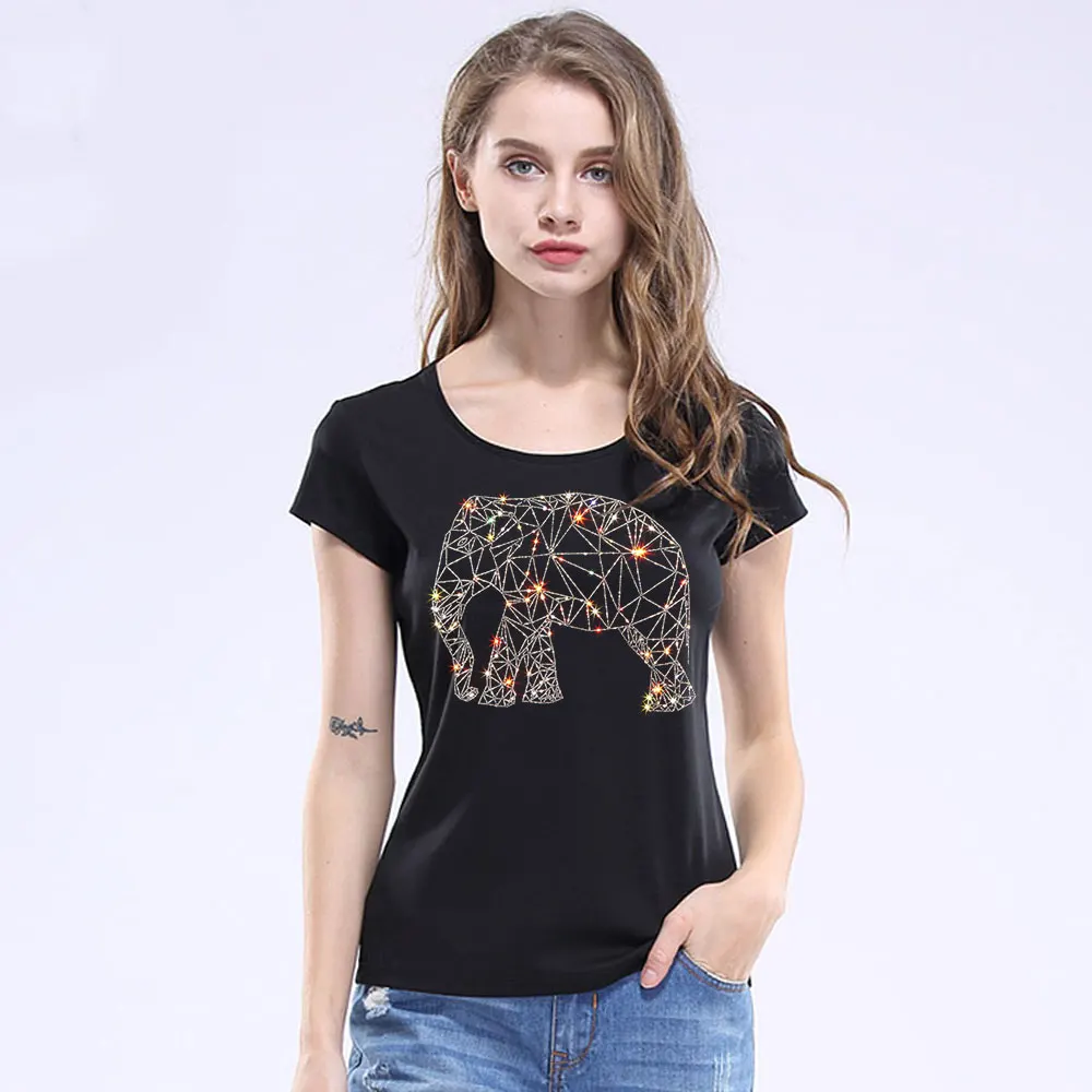 Блестящие футболки с рисунком слона, модные женские повседневные футболки с круглым вырезом и коротким рукавом, женские футболки 2022
