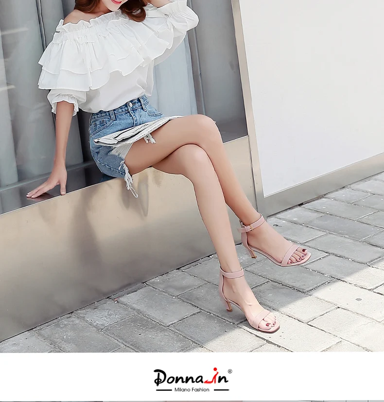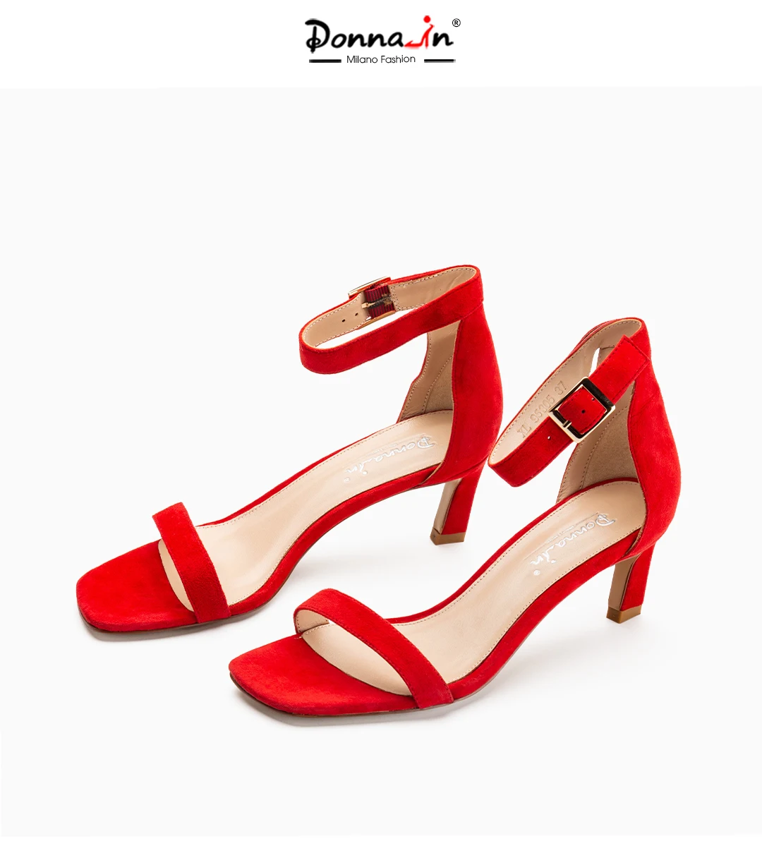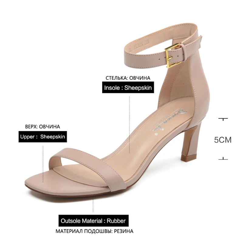 Donna-in2021 новые летние женские босоножки телесного цвета, роскошный дизайн, овечья кожа, квадратный носок, каблук средней высоты, модная обувь с ремешком на щиколотке