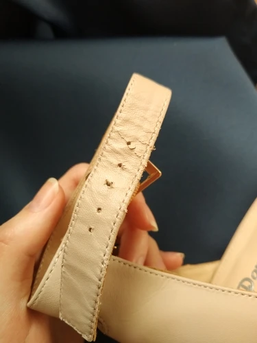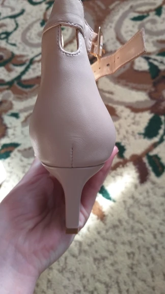 из-за острого угла на застёжке испортился ремешок! это очень расстроило! туфли очень красивые. на стопу 24,5 подошли, но немного свободновато. также были видны следы клея, продавец положил запасные набойки.