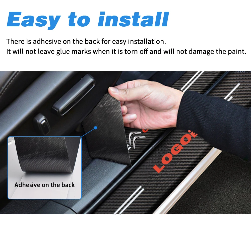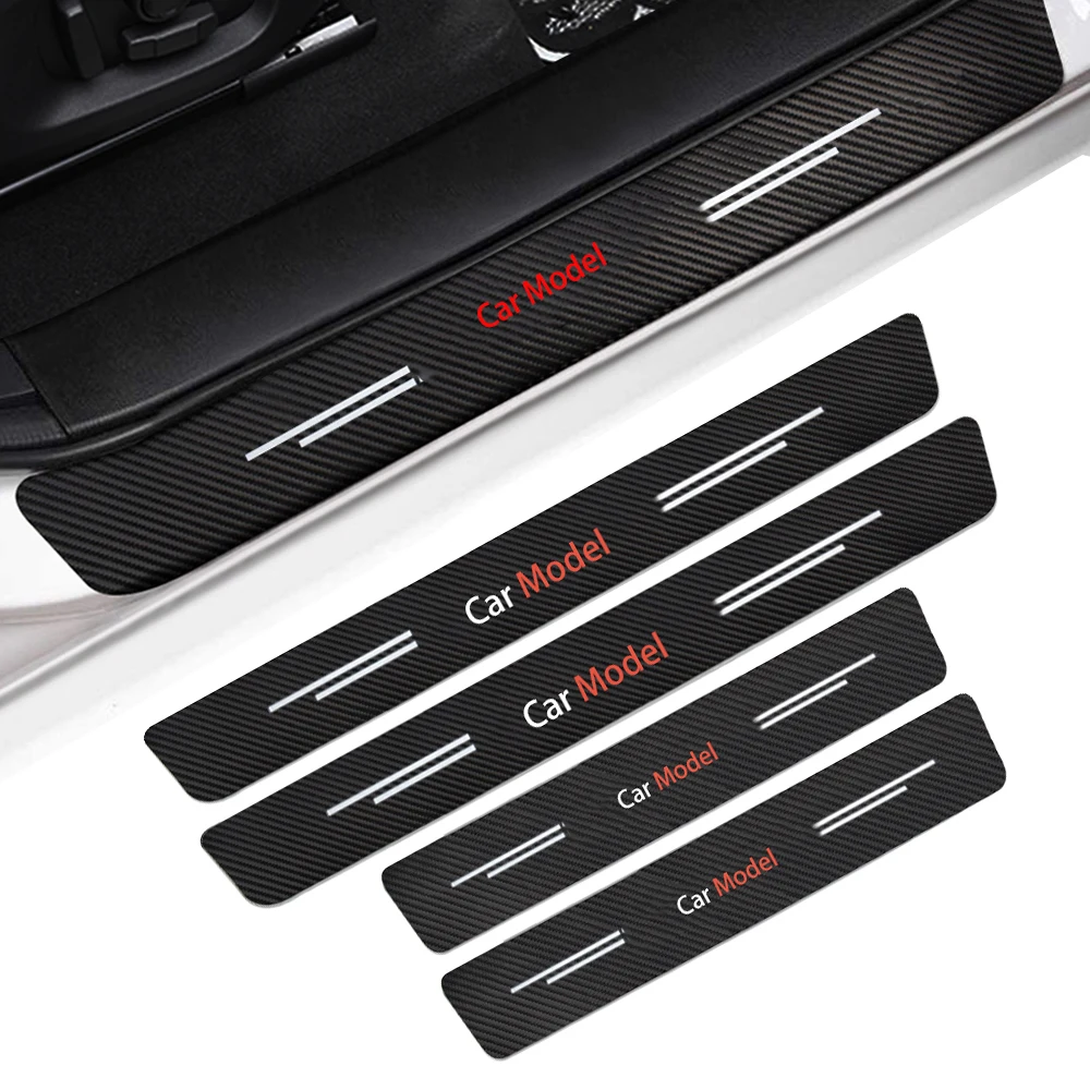 4 шт., наклейки на порог двери автомобиля, из углеродного волокна