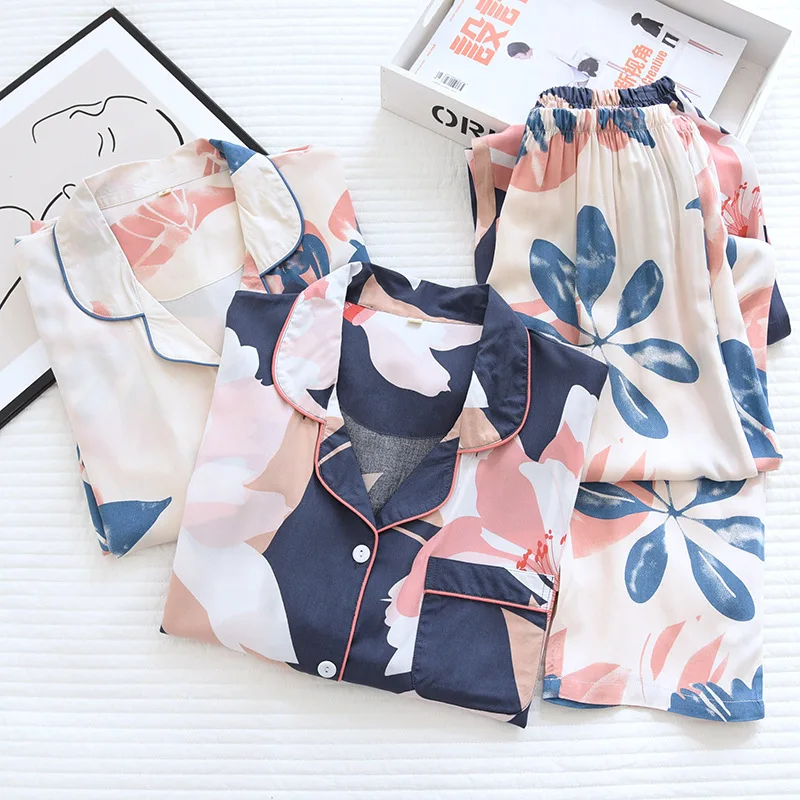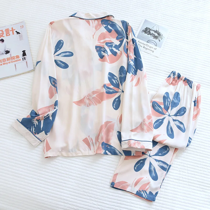 Пижамный комплект JULY'S SONG Женский, повседневная одежда для сна с длинным рукавом, вискоза, с принтом, домашняя одежда, весна-лето 100%