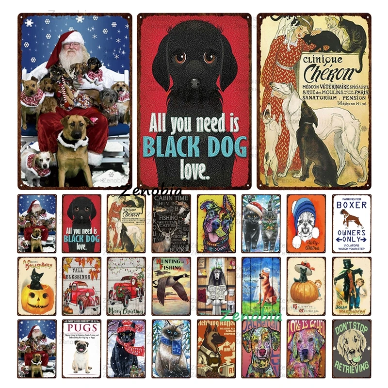 Рождественский мультяшный стиль собака металлическая железная живопись винтажный потертый знак домашнее украшение модульная Ретро пластина настенное искусство мужская пещера Декор