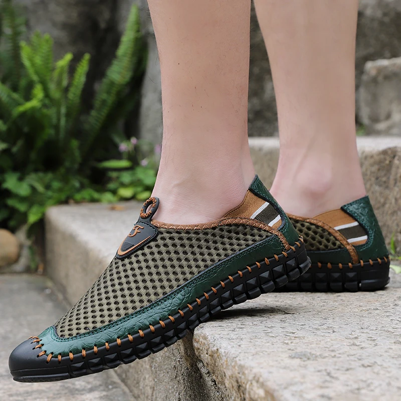 Сандалии мужские сетчатые без шнуровки, Модные Повседневные Дышащие универсальные, с резиновой подошвой, летняя Уличная обувь