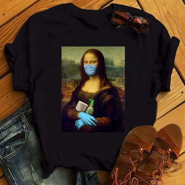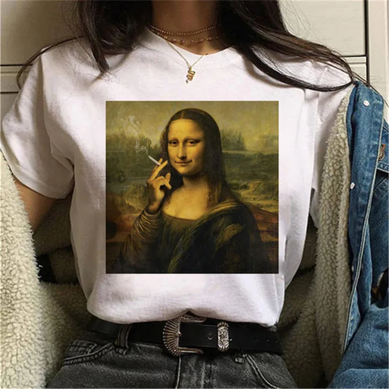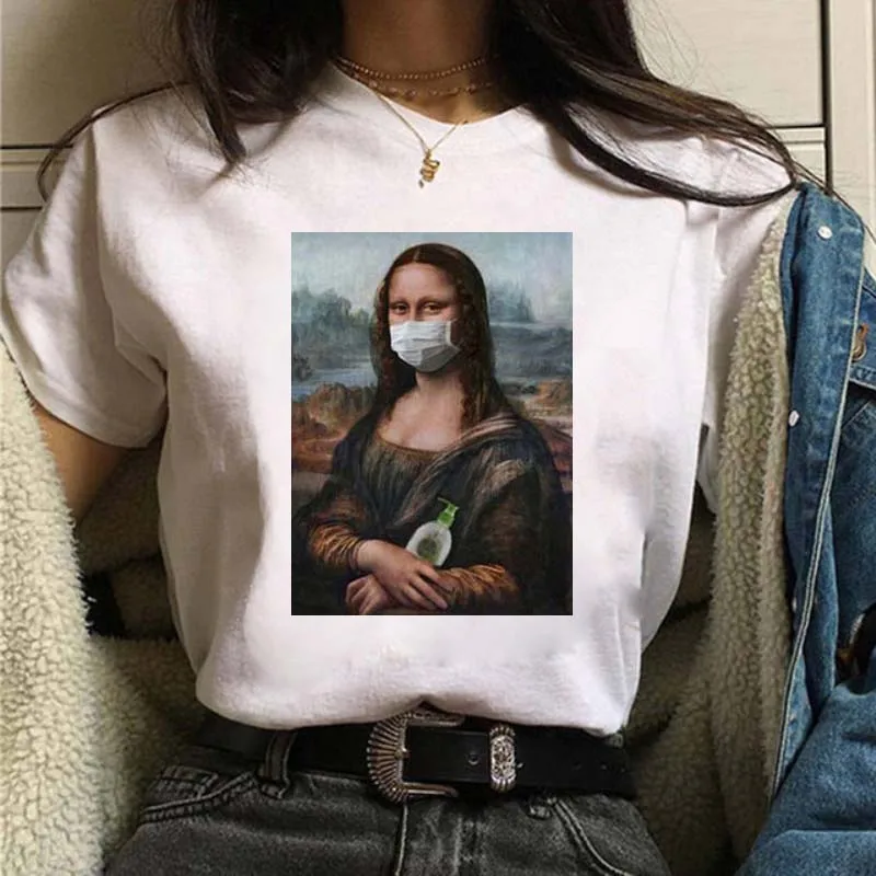 Мона Лиза маска Harajuku футболка с рисунком женские Ullzang Ретро ...