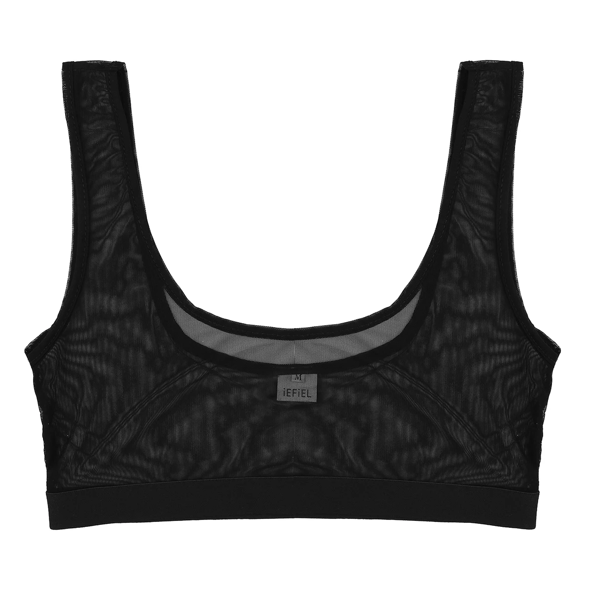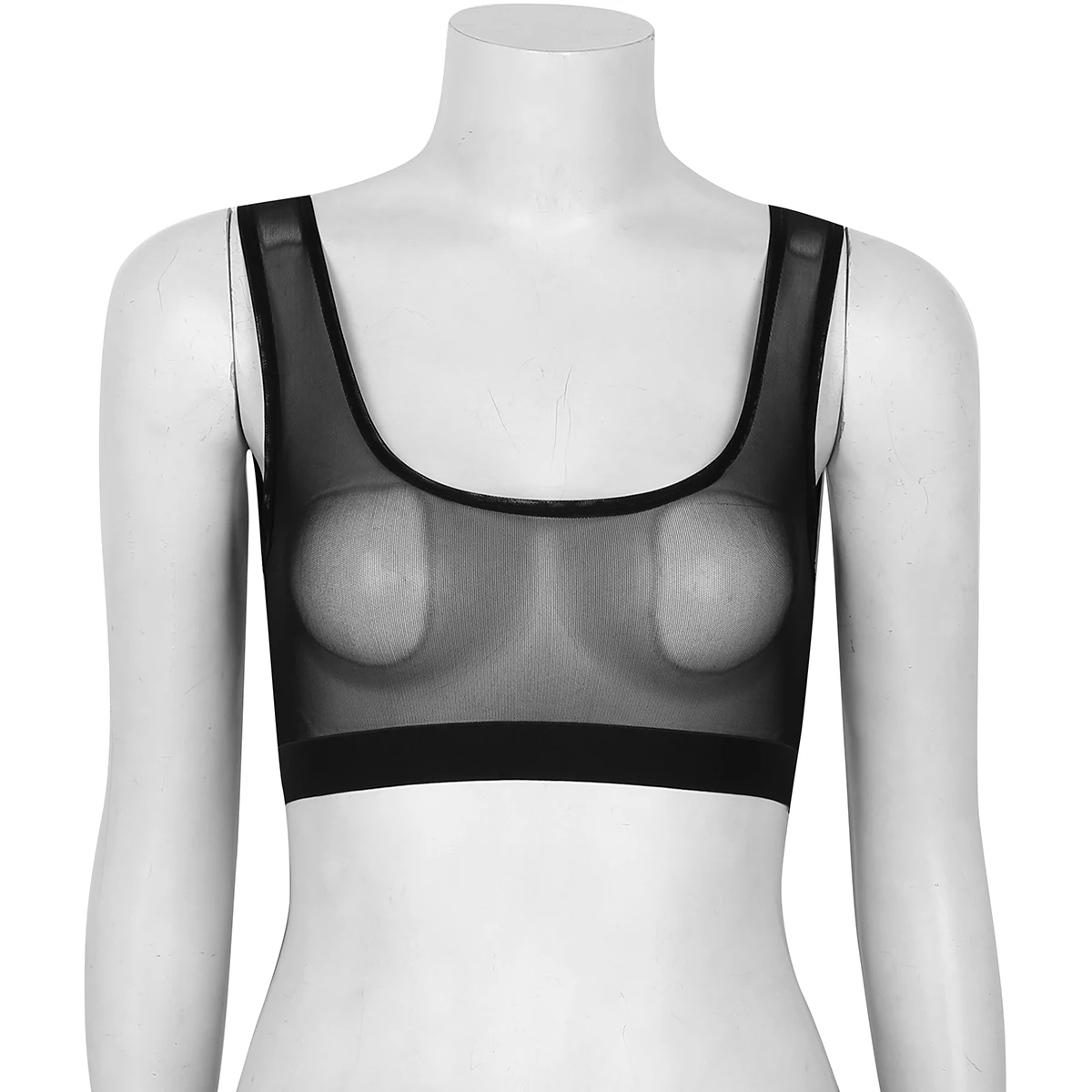 Женский сексуальный укороченный топ без рукавов, прозрачный эластичный сетчатый бюстгальтер без косточек, жилет с глубоким U-образным вырезом, майки, топы, сексуальные бюстгальтеры