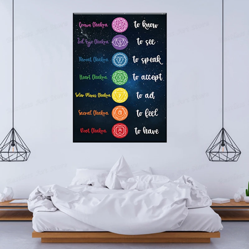 Настенный плакат с 7 чакрами, домашний декор, настенные картины для...