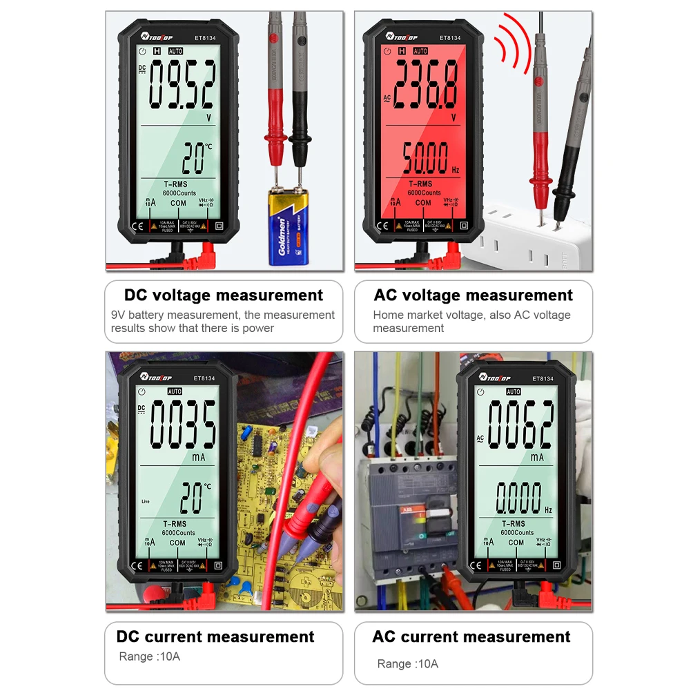 Мультиметр ET8134, 4,7 дюйма, Функция измерения постоянного тока, напряжения, тока, переменного тока, емкости, сопротивления, подсветки