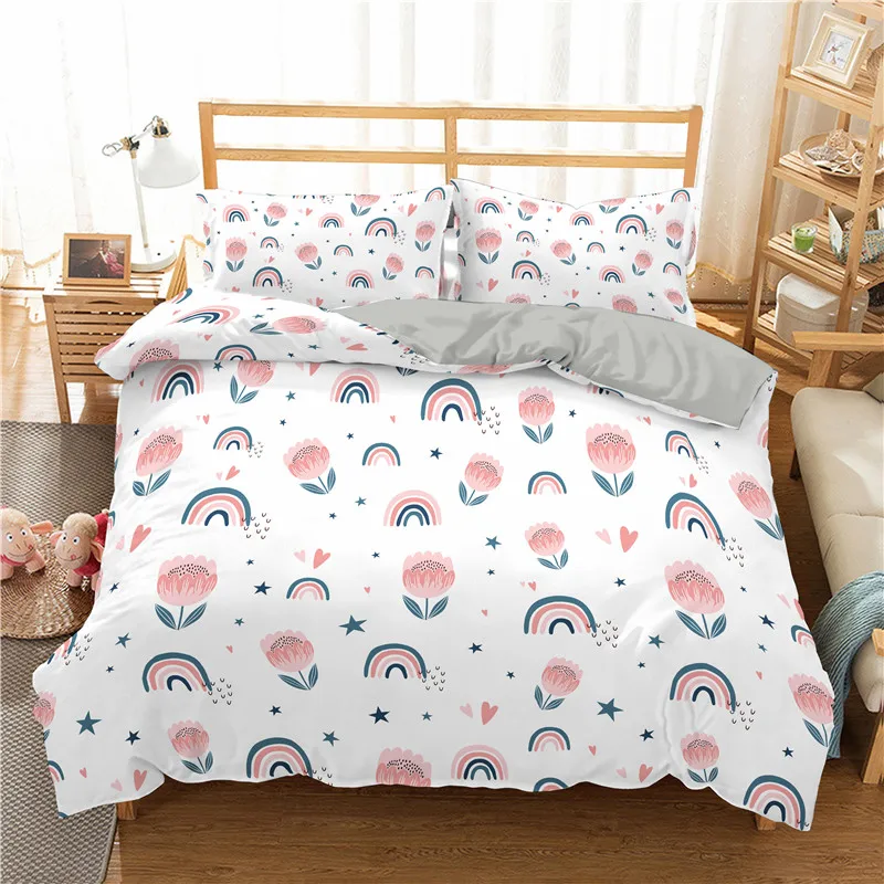 Домашний текстиль с мультипликационным 3D принтом, пододеяльник с рисунком дождевик и бантом на мостике, наволочка для девушек, спален, односпальный, двуспальный, Королевский пододеяльник