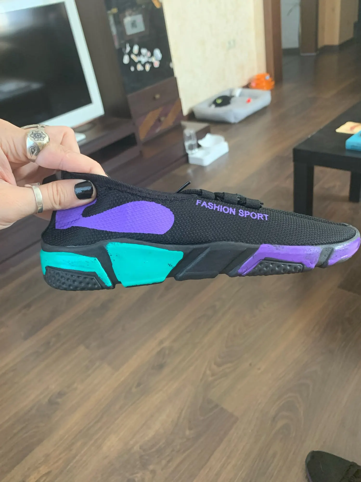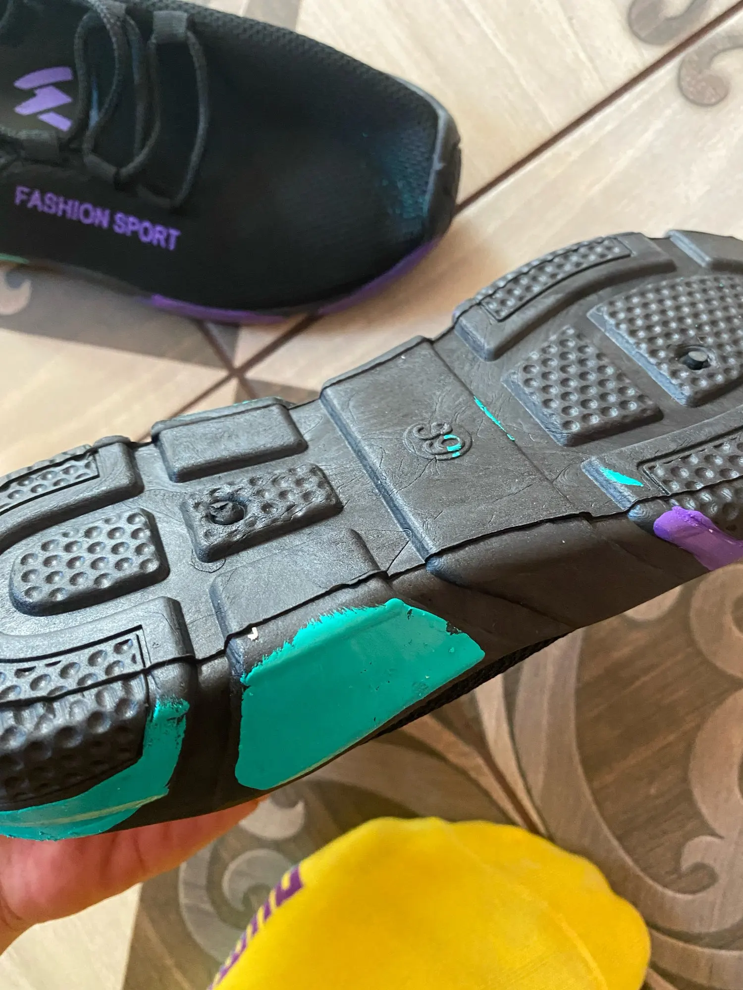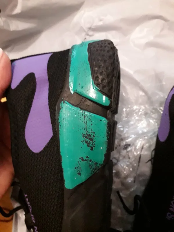 Здравствуйте, я разочарован этой статьей, потому что цвета на подошвах были окрашены! Кроме того, с большим количеством заусенцев. Краска прилипает, когда вы нажимаете на нее, отпечаток пальцев остается. Я не ожидал хорошего качества продукта, учитывая цену, но в любом случае... Там я нахожу это позорным!!