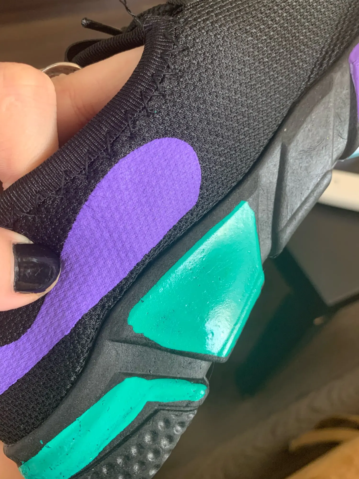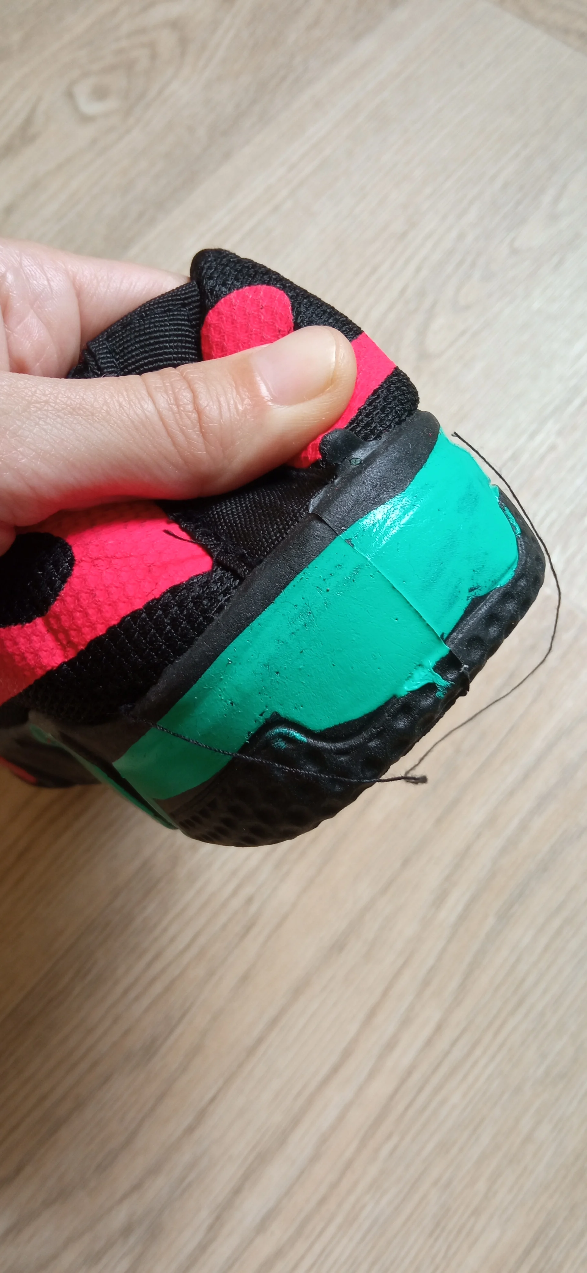 ужасное качество, как-будто макет кроссовок, тряпочки, краска нанесена не ровно, липкая