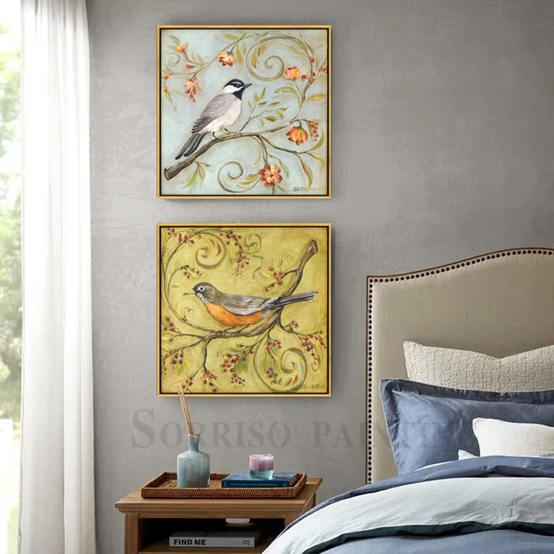 Картина на холсте для стен прихожей, декор с изображением птиц, цветов, искусства для гостиной, столовой, коридора