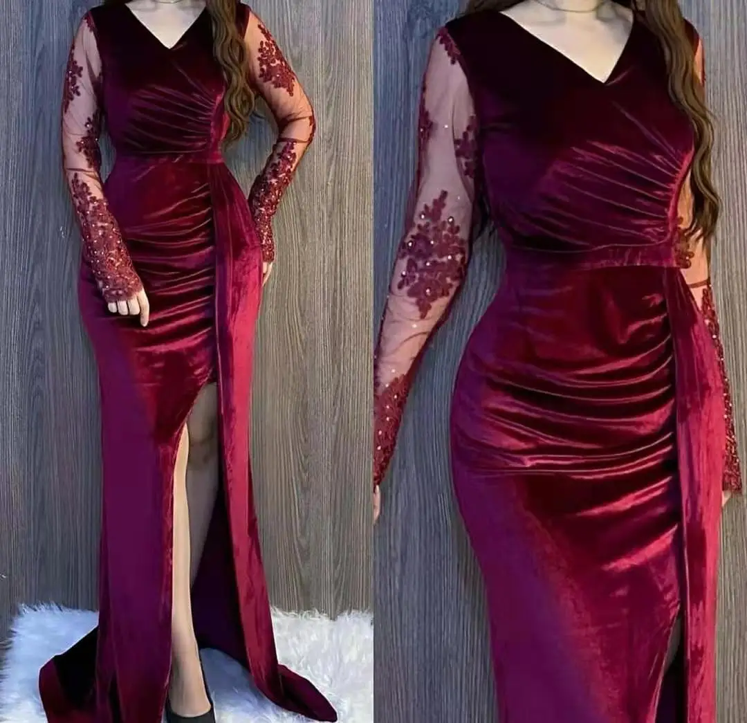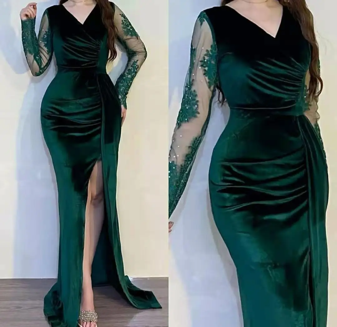 Элегантное кружевное вечернее платье русалки с длинным рукавом, с разрезом, длиной до пола, на молнии, в арабском стиле, вечерние платья для женщин