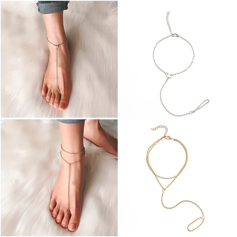 Браслеты на ногу женские с металлическими звеньями, модные простые анклеты на ногу с цепочкой, Пляжные Сандалии, босоножки в богемном стиле, летняя бижутерия