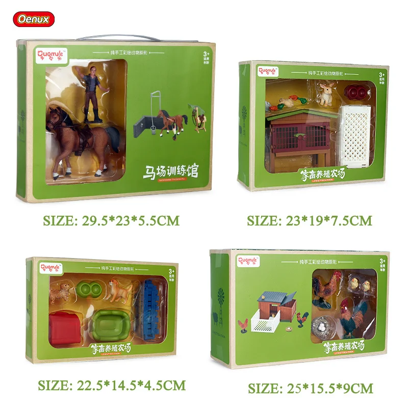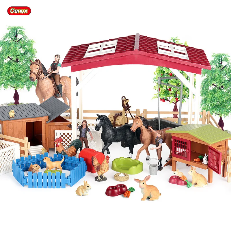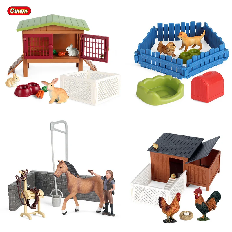 Характеристика:Oenux ферма зоопарк имитация Птицы Животные набор кролик курица собака дом фигурки лошадей фигурки детей игрушка в подарок с коробкой