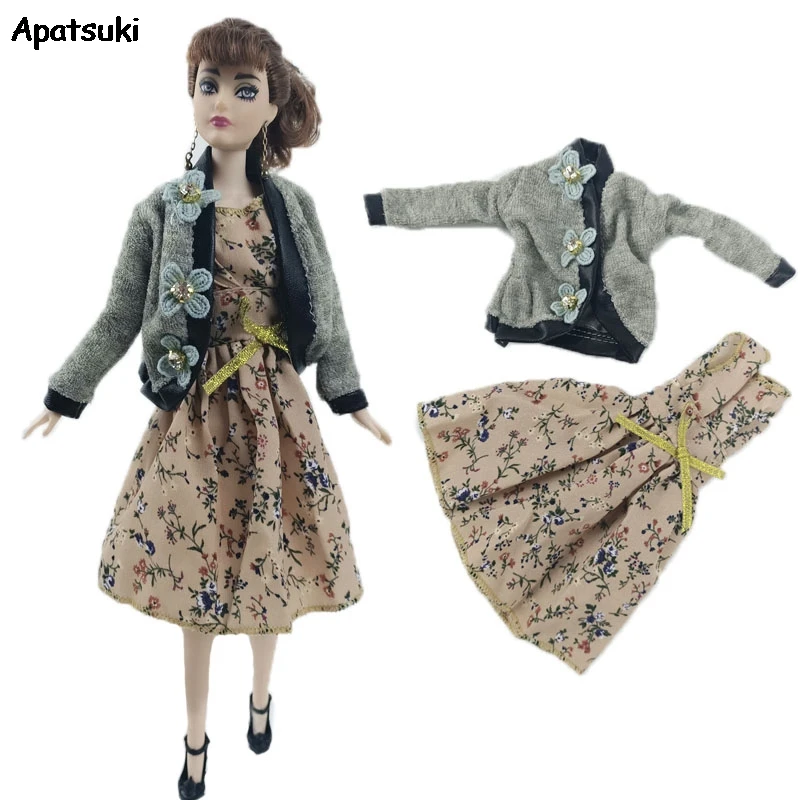 Серое пальто сельской местности, платье с цветочным мотивом для куклы Барби Одежда ручной работы для 16 BJD кукла аксессуары для детей игрушки "Сделай своими руками"