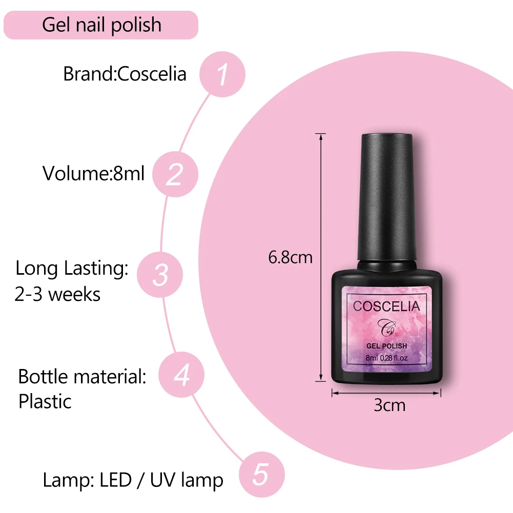 COSCELIA маникюрного геля для ногтей! Полупостоянная 8 мл Гель-лак для ногтей Светодиодный УФ Лаки био-Гели Soak Off ногтей художественный Гель-лак для ногтей дизайн