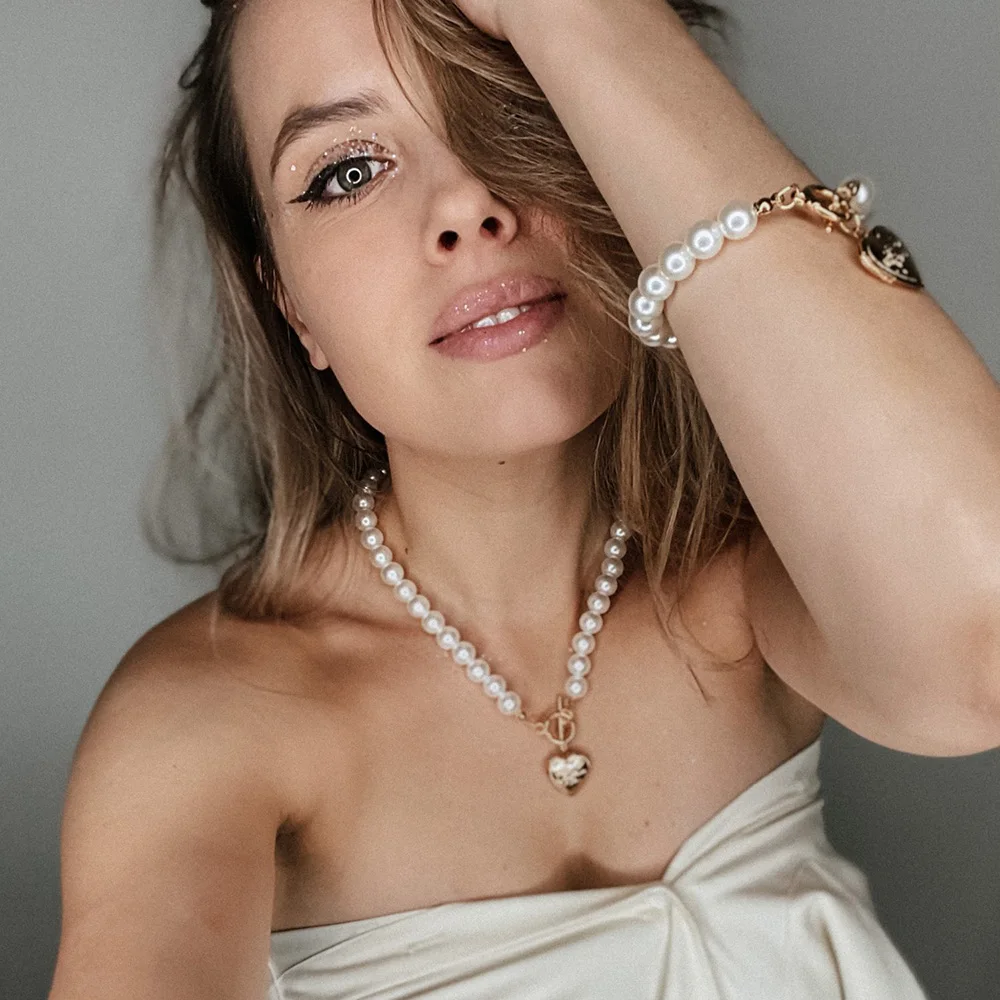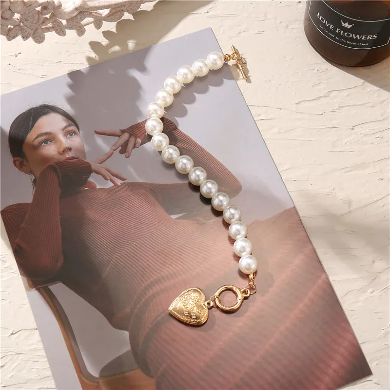 Ожерелье женское с кулоном в форме сердца, с искусственным жемчугом